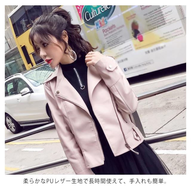 | 全2色×6サイズ!女性のカッコイイを演出するライダースジャケットが新登場! 柔らかなPUレザー生地で長時間使えて、手入れも簡単。 お洒落な着こなしを叶えるブラックとピンクの2色展開。 短めの着丈が、トレンドのハイウエストボトムや、ワイドパンツなどとのスタイリングもバランスよくキマります♪ サッと羽織るだけで、こなれた旬スタイルに! 色んなシーンで重宝すること間違いナシのおススメアイテム! | |