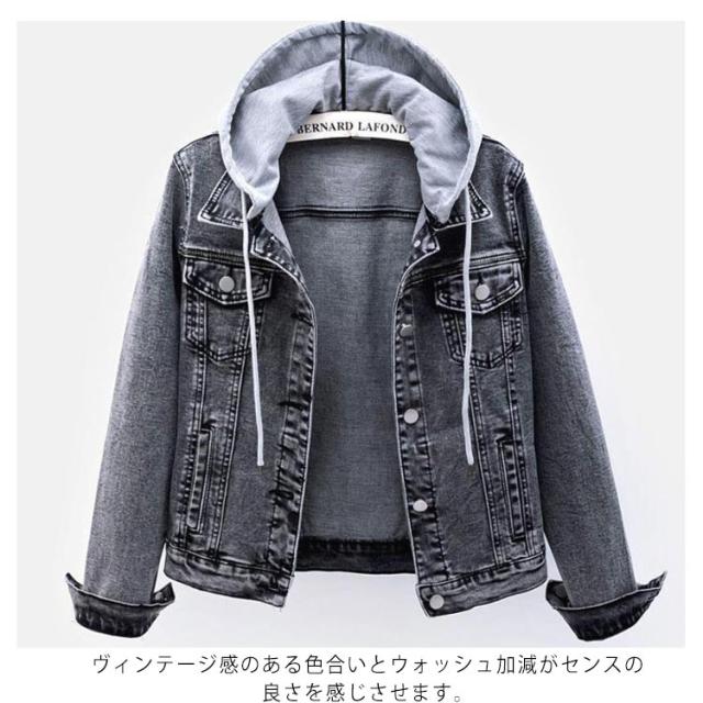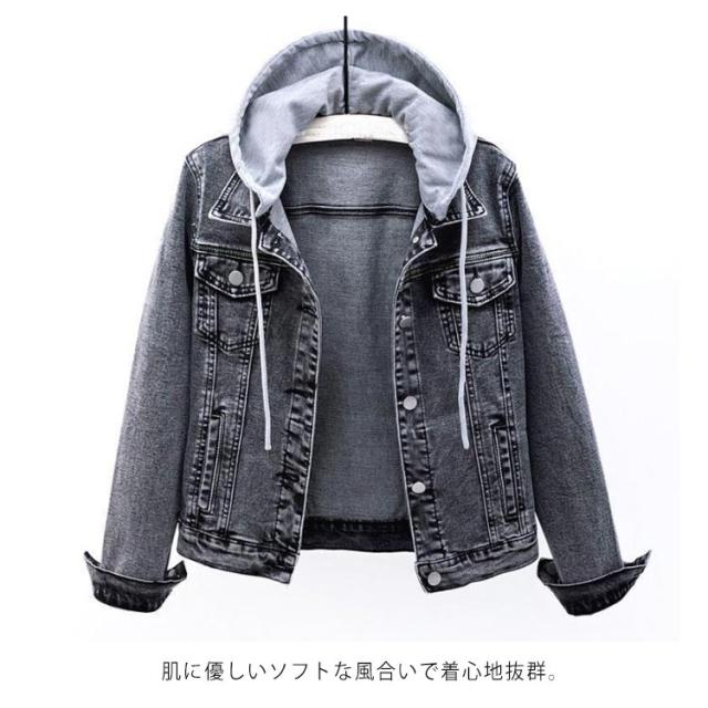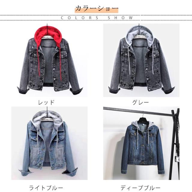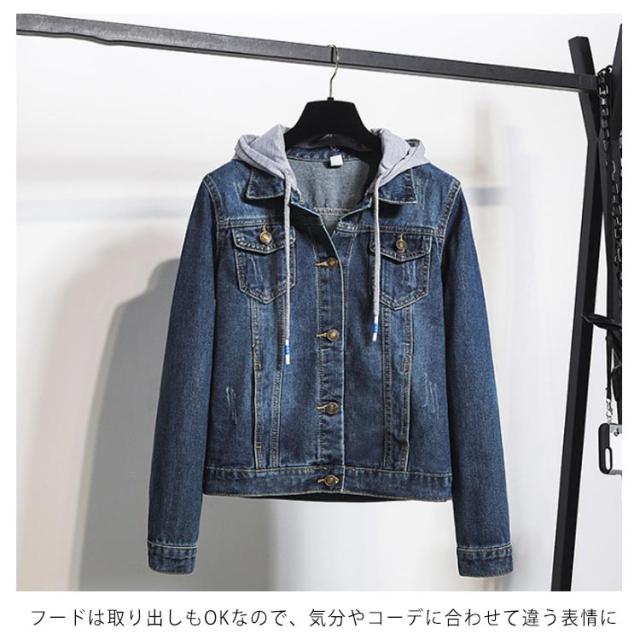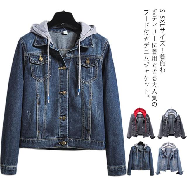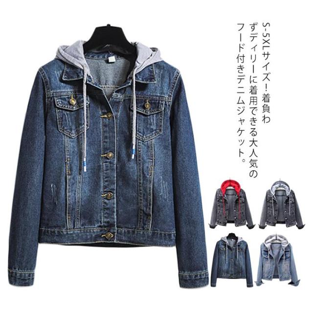 全4色×8サイズ!春アウター デニムジャケット Gジャン レディース フード付き デニム ジャケット ブルゾン カジュアル 春ジャケット コート 大きサイズ 通学 20代 30代 40代