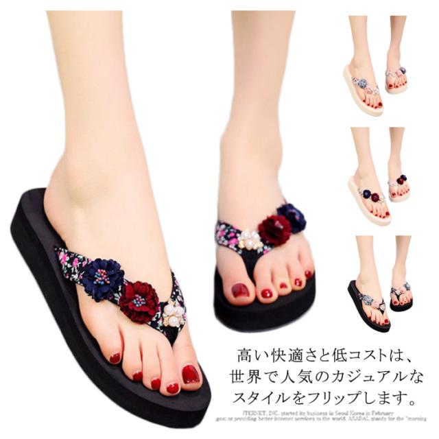 フリップフロップ レディーススリッパ ハイヒール カジュアルスリッパ レディース スリップ 花柄 厚底 滑り止め スリッパ 夏 ハイヒール ビーチスリッパ ウェッジソール おしゃれ サンダル 快適 リゾート風 新作
