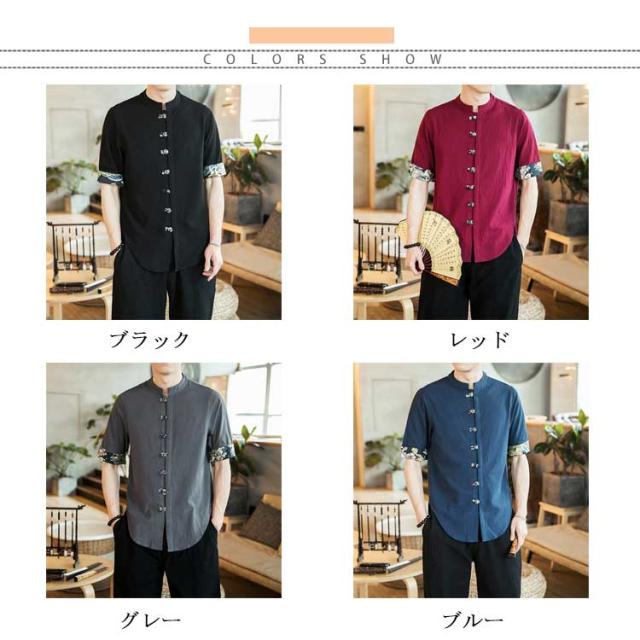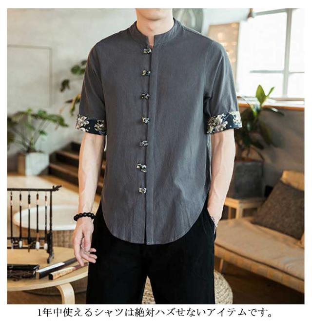 | チャイナ風のデザインがコーディネートのアクセントに☆裾のサイドにスリット入り、 ボタンもチャイナボタン風のデザイン、清涼感のあるサラッと着れる中国風シャツです。 1年中使えるシャツは絶対ハズせないアイテムです。 普段着にはもちろん、お出かけ、スポーツ、デート、旅行、父の日、彼氏や大切な方への贈り物にもおすすめです。 | |