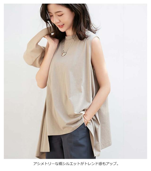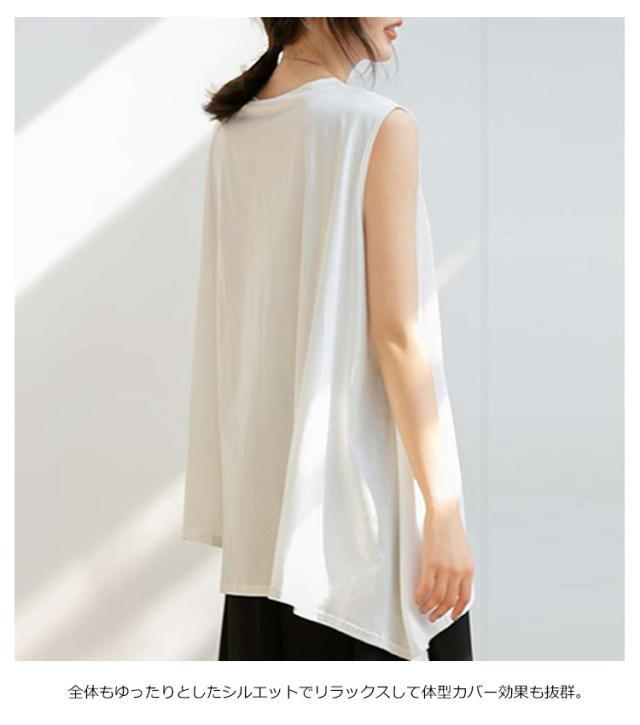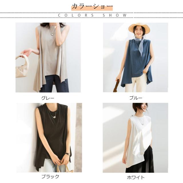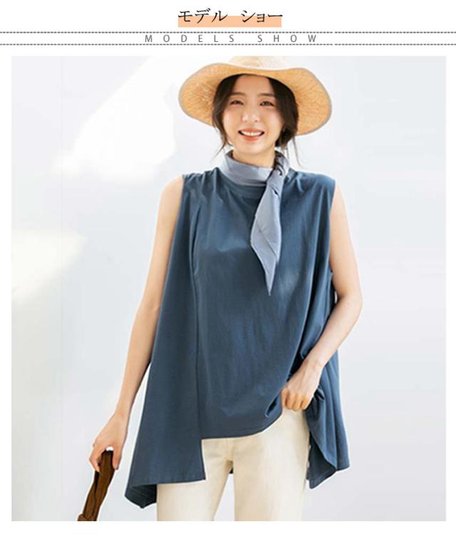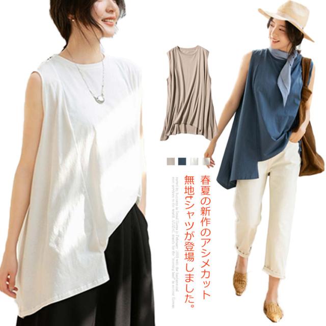 全4色×4サイズ!アシメカット タンクトップ ノースリーブ 無地 トップス ノースリーブtシャツ アシメトリー裾 レディース 春 夏 Aライン フレア 大きサイズ 夏服 綿 お洒落 送料無料