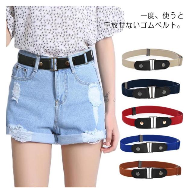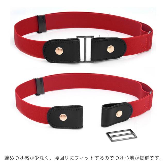 | 一度、使うと手放せないゴムベルト。 ベルトループ(ベルト通し)にゴムベルトの両端をパチンと留めるだけ。 バックルが無いため、ウエストをスリムに細く見せる事が出来ます。 ベルトを着けたままボトムスが脱げる! バックル付属で2通りのおしゃれが楽しめる! ファッションや用途に合わせて、使用することができます。 締めつけ感が少なく、腰回りにフィットするのでつけ心地が抜群です。 | |