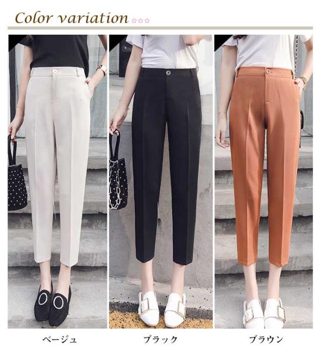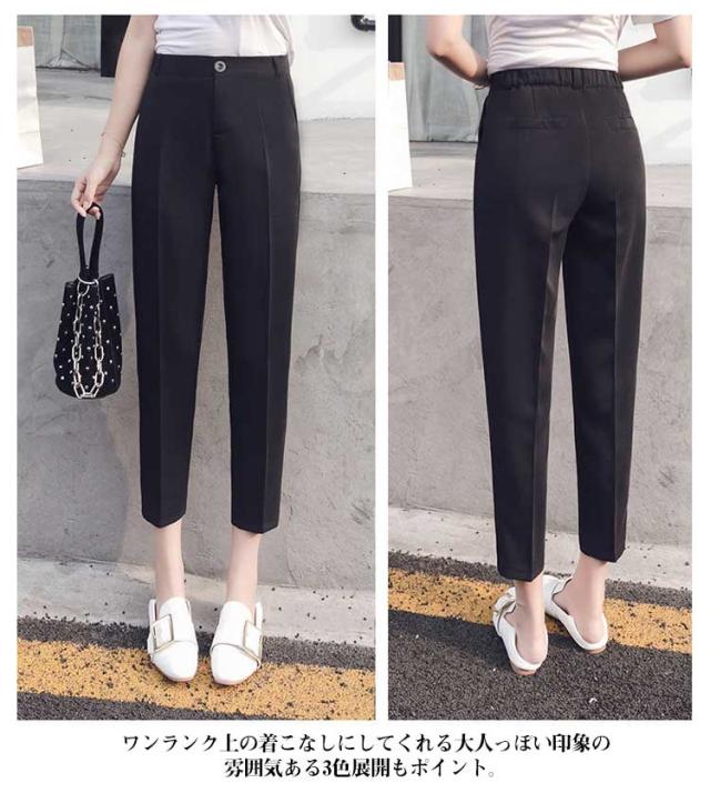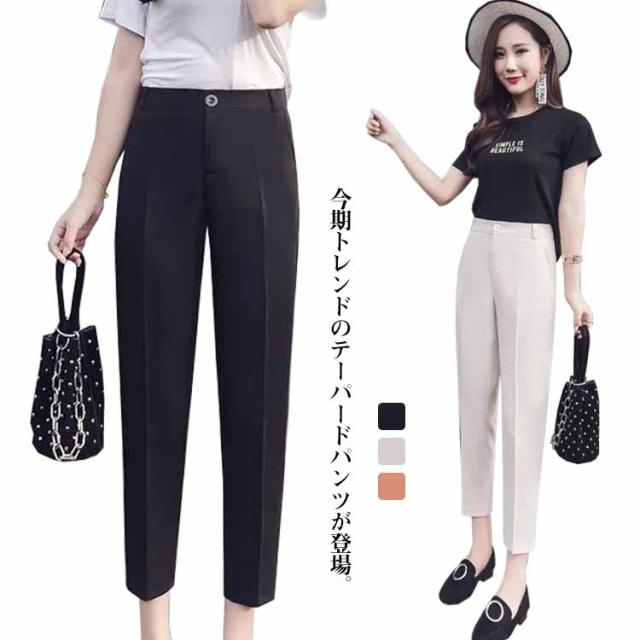 テーパード レディース 通勤 9分丈パンツ スラックスパンツ カジュアルパンツ テーパードパンツ ハイウエスト バックのみゴム ボトムス OL オフィス 薄手 シンプル 無地 ブラック ベージュ テーパードパンツ