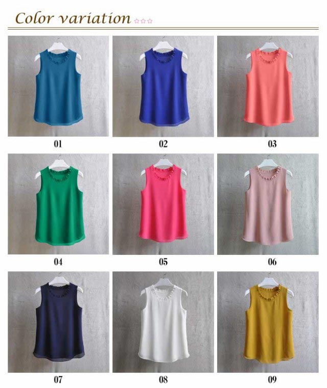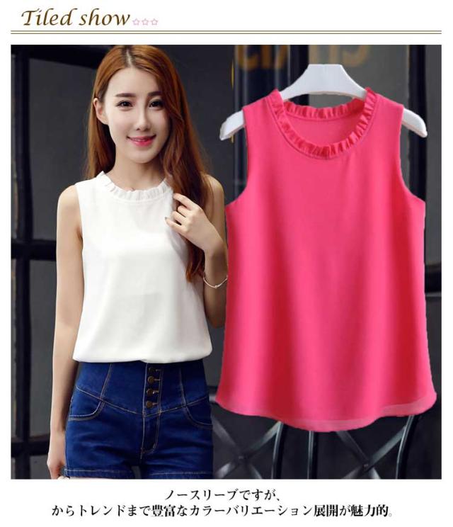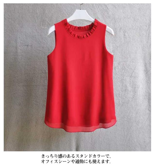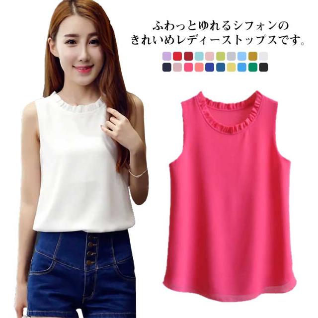 ブラウス トップス シフォン タンクトップ カジュアル スカラップ襟 40代 全20色 ノースリーブシャツ インナー フェミニン エレガント レディース 無地 20代 30代 ノースリーブ
