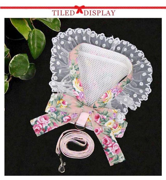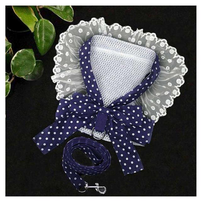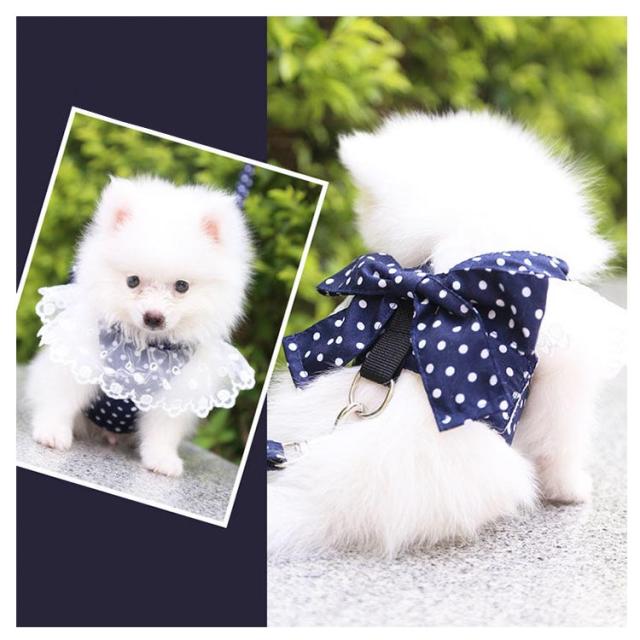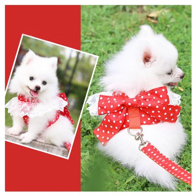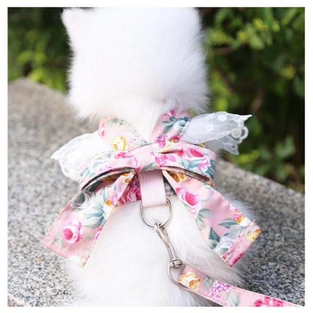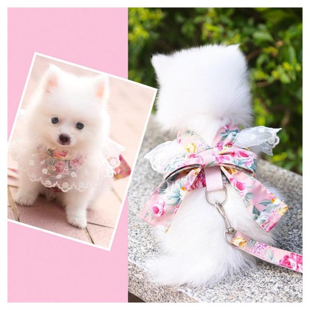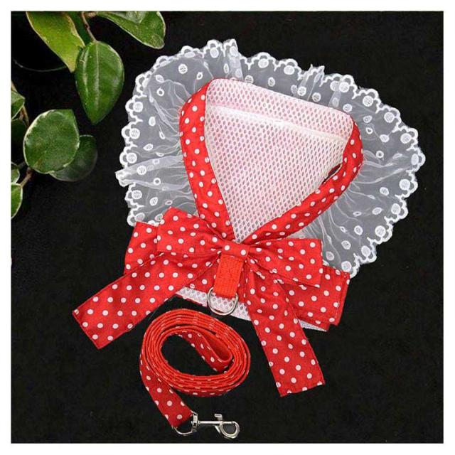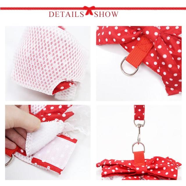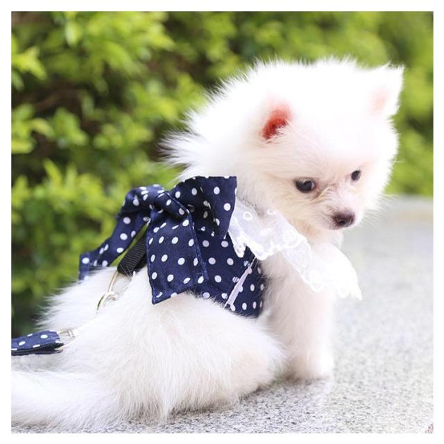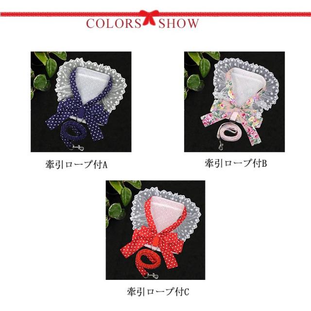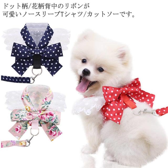 犬用 ハーネス ワンピース 牽引ロープ 牽引ロープ付き メッシュ マジックテープ式 リボン付き 通気 ドット柄 ペット用品 小型犬 中型犬 散歩 お出かけ用 猫用 花柄