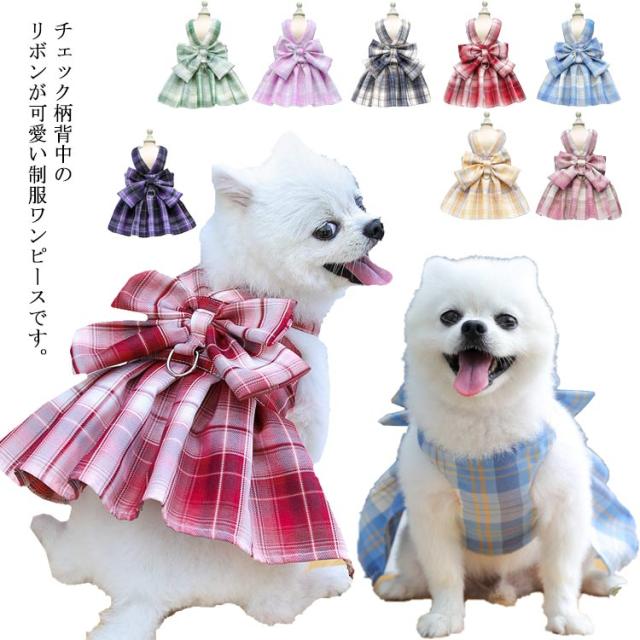 | チェック柄背中のリボンが可愛い制服ワンピースです。 小型のわんちゃんだけでなく、ねこちゃんが着てもとってもキュートにきまります! おそろいで着てもかわいい | |