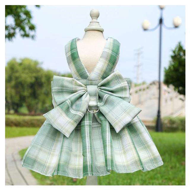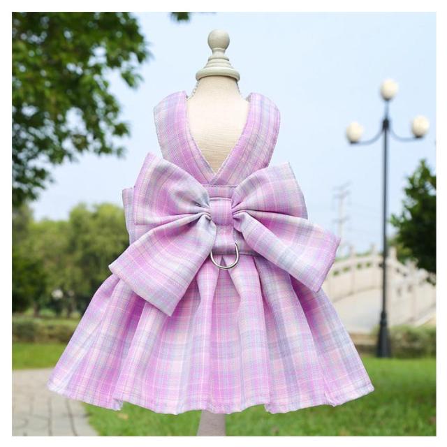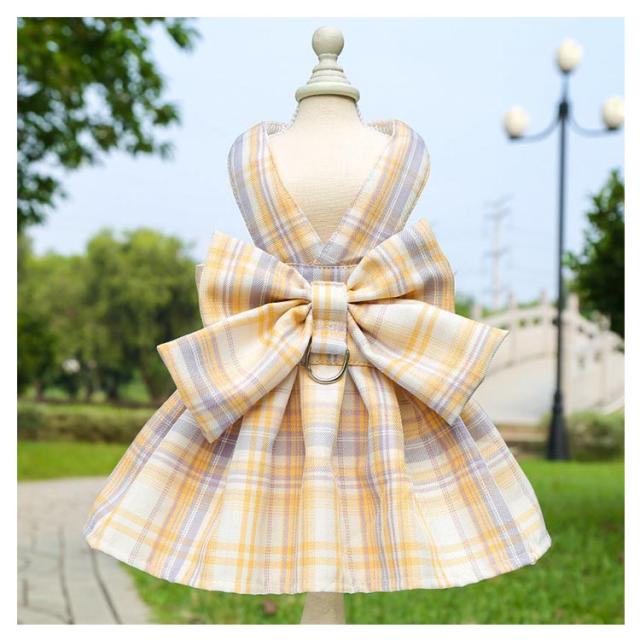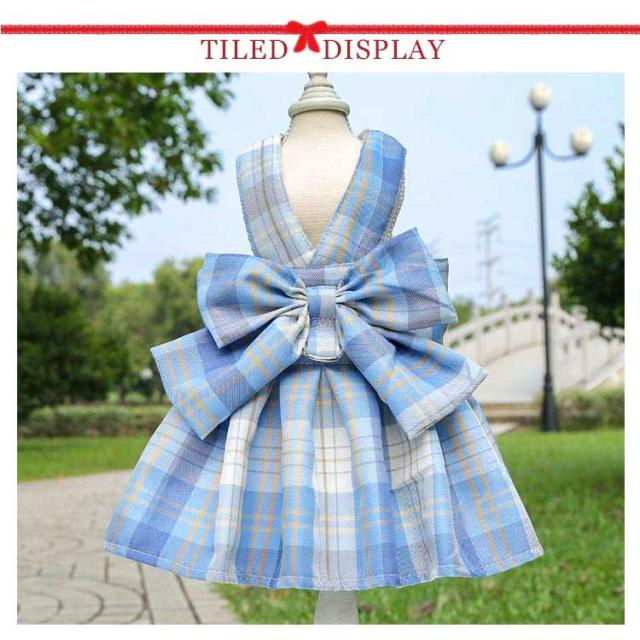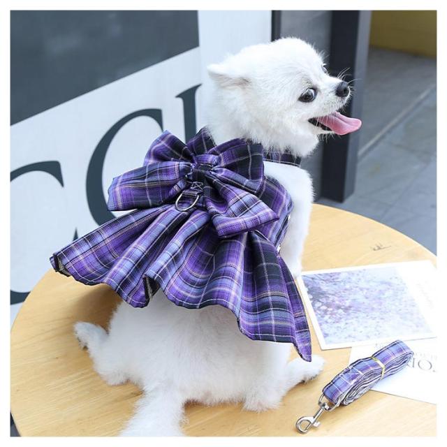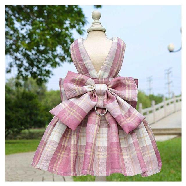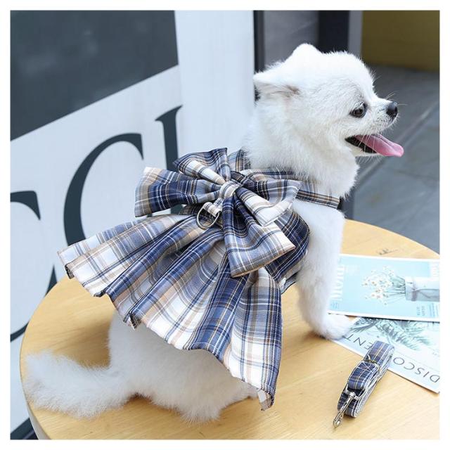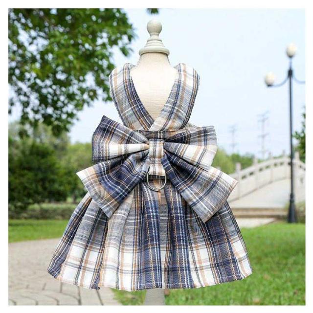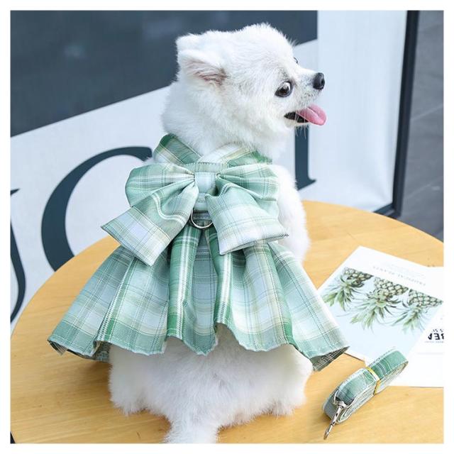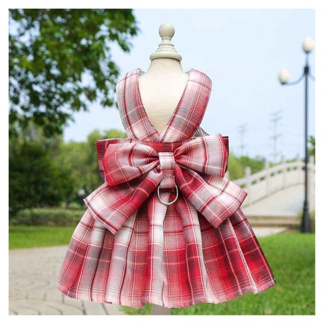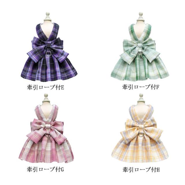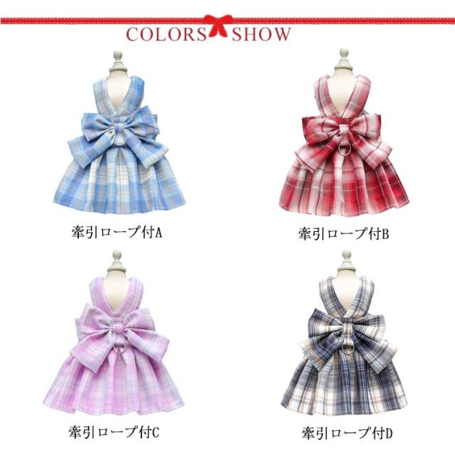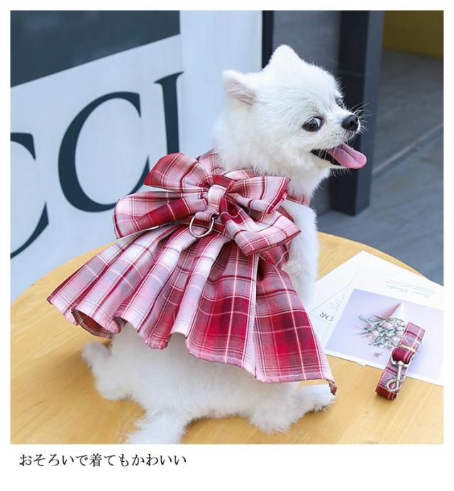 リボン付き 小型犬 ワンピース チェック柄 牽引ロープ付き ワンピース 通気 犬用 ペット用品 メッシュ 中型犬 散歩 お出かけ用 猫用 ハーネス