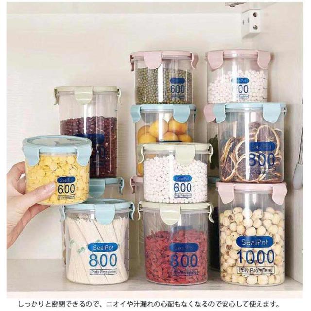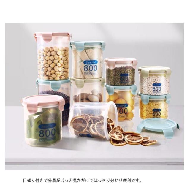 湿気防止 透明 保存瓶 プラスチック 密閉容器 密封容器 密封瓶 保存容器 シンプル おしゃれ 600ml 800ml 密封びん 貯蔵瓶 軽い 目盛り付き 6個セット コーヒー お茶 ドライフルーツ 保存 砂糖入れ 塩入れ フードストッカー 果実酒び クリア キッチン収納 丸型