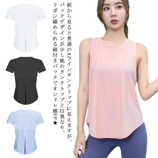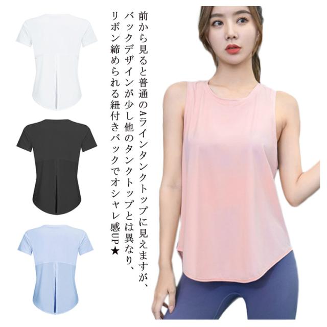 インナー リボンバックデザイン ダンス タンクトップ トップス レディース ヨガ レディースウェア 2タイプ×4カラー おしゃれ yoga スポーツブラ タンクタイプ ピラティス ジム ランニング ヨガウェア