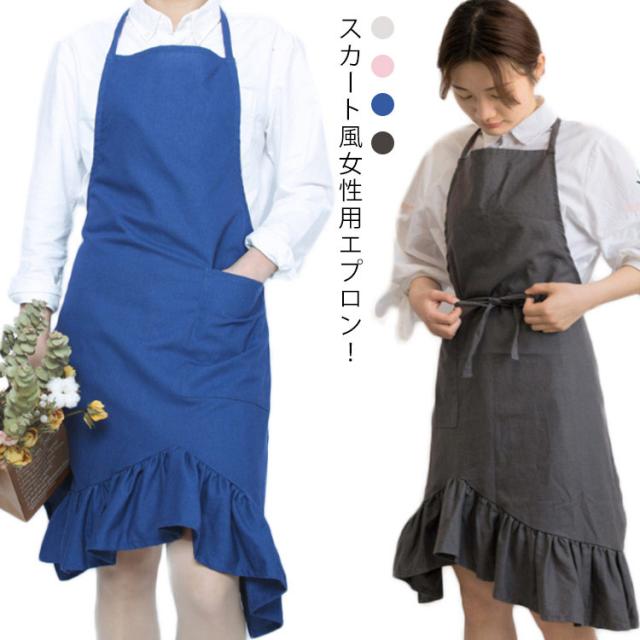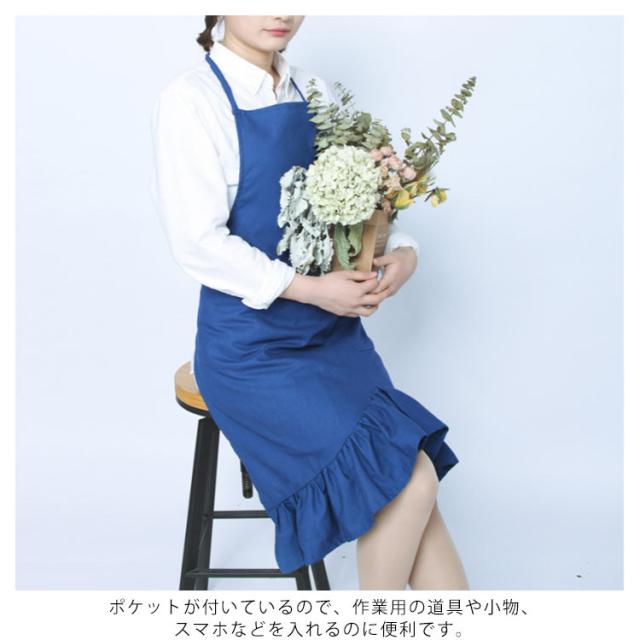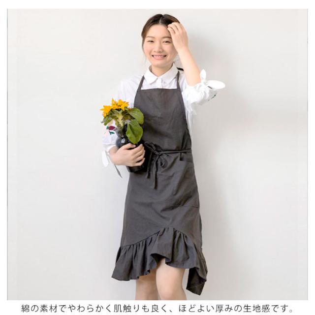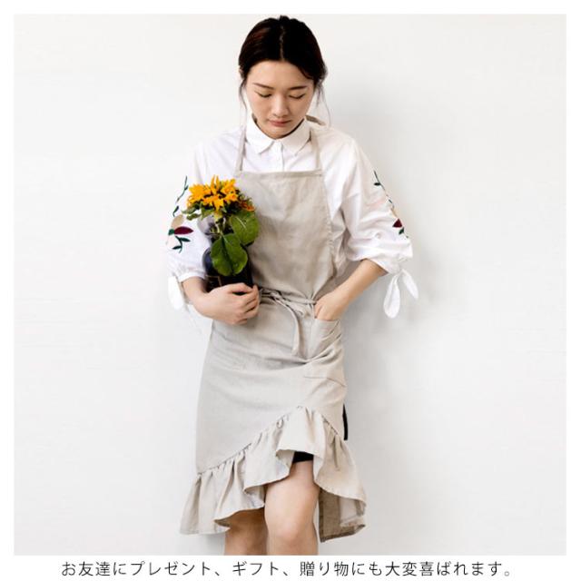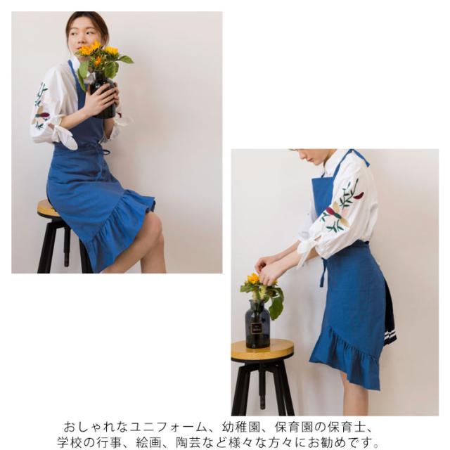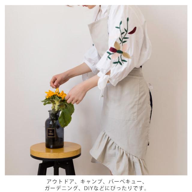 前掛け 飲食店 レディース 首掛けエプロン 送料無料 おしゃれ 業務用 家庭用 ナチュラル 前掛け 無地 作業用 北欧風 ガーデニング 園芸 花屋 透けない DIY コットンリネン ポケット付き ロング丈 スカート風エプロン
