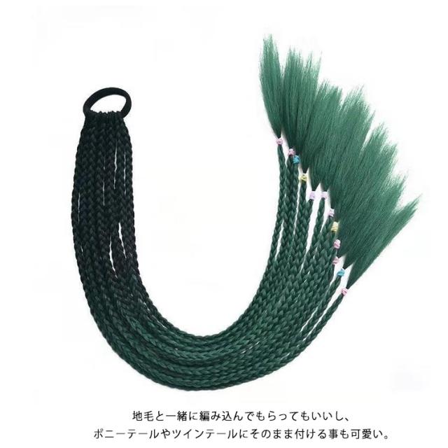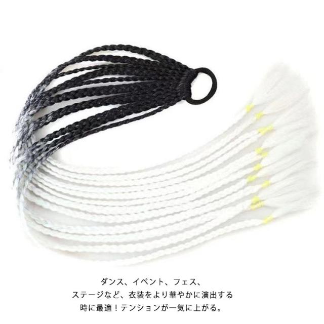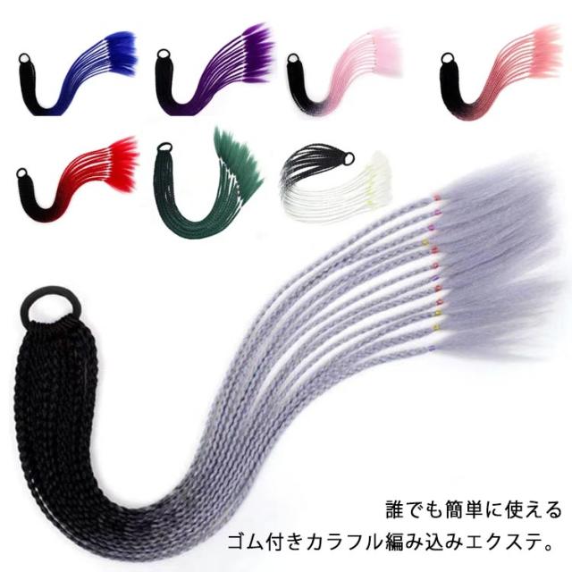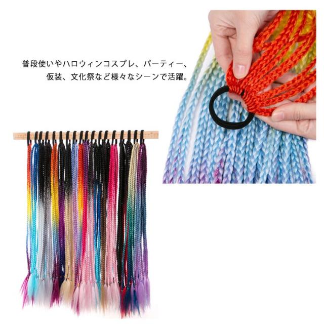 三つ編み エクステ ヒップホップ ドレッドヘア エクステンション 簡単装着 メッシュ ポニーテール 送料無料 仮装 つけ毛 ダンス 衣装 ウィッグ 発表会 フェス コスプレ ゴム付き