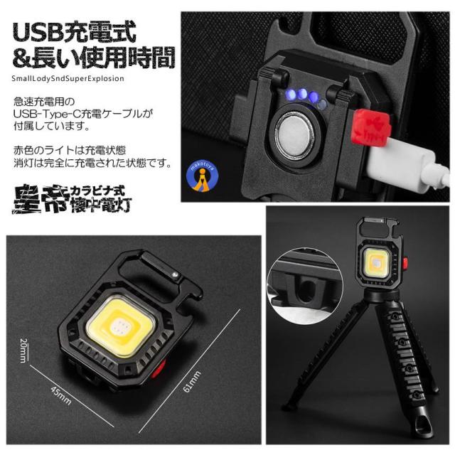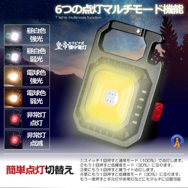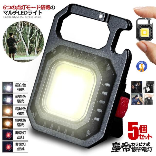 5個セット マルチLEDライト LED ライト 6点灯モード カラビナ式 磁石搭載 缶切り付き USBケーブル付き 充電式 COB キーホルダー 懐中電灯 作業灯 投光器 防水 皇帝ライト防災 災害 KOUTEIKA