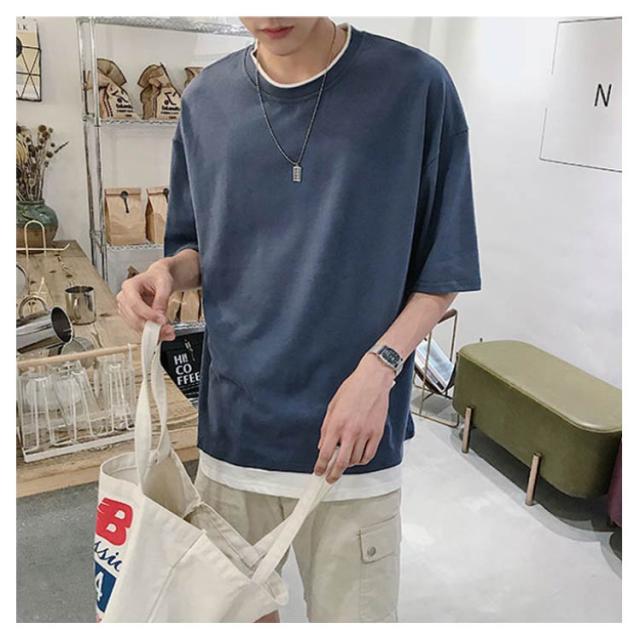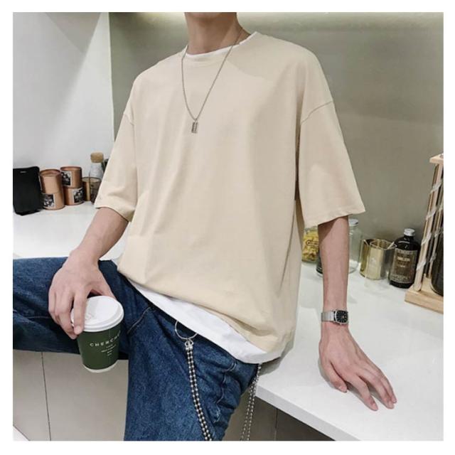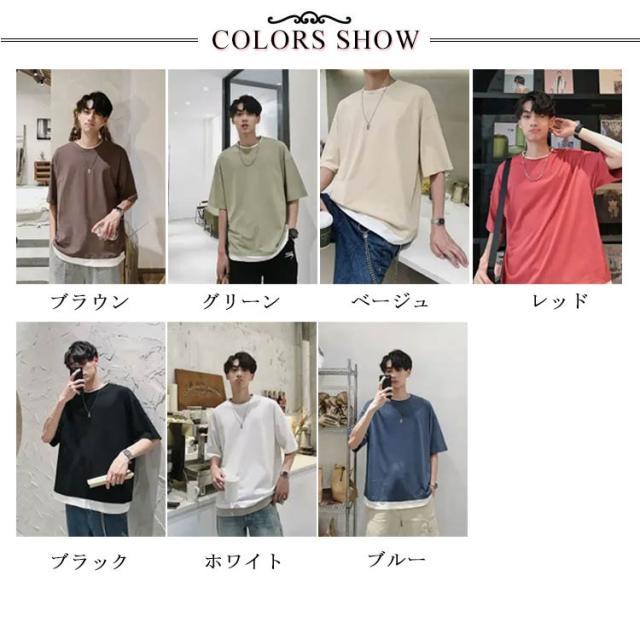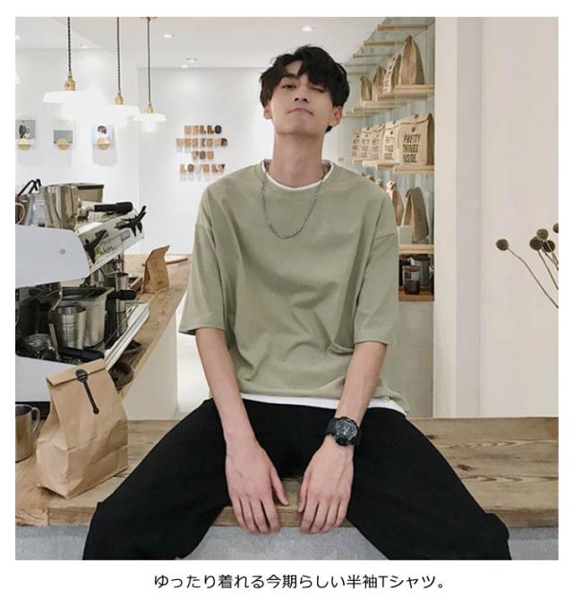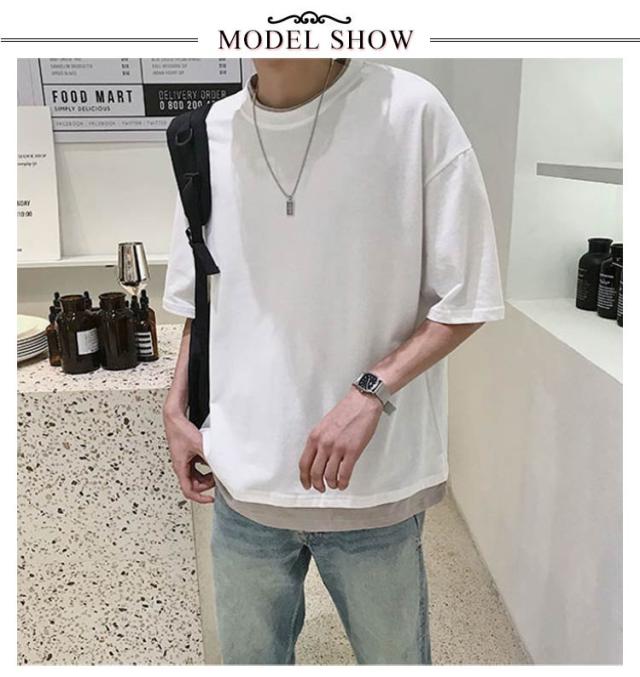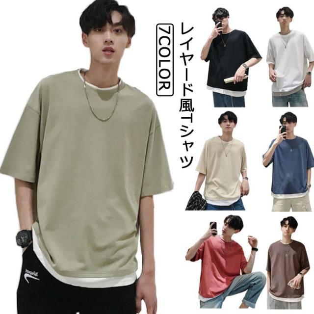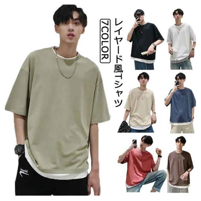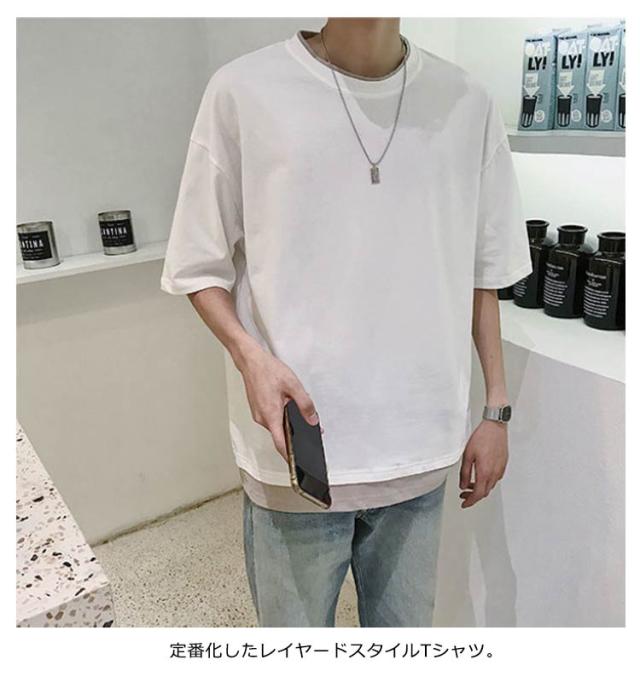 メンズ 送料無料 レイヤード おしゃれ 綿 ファッション ビッグシルエット 半袖 無地 韓国 ビッグtシャツ おうちコーデ コットン 韓国服 tシャツ