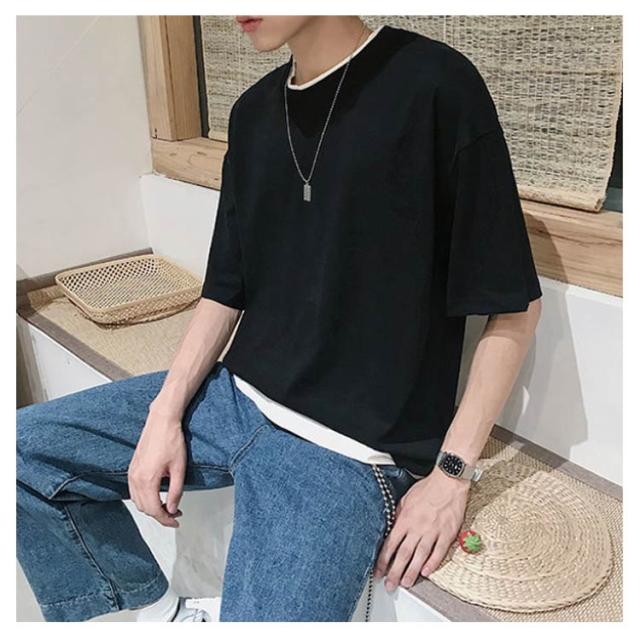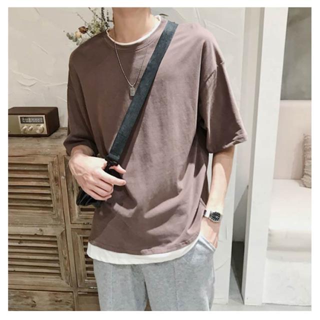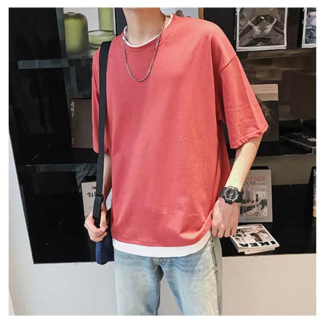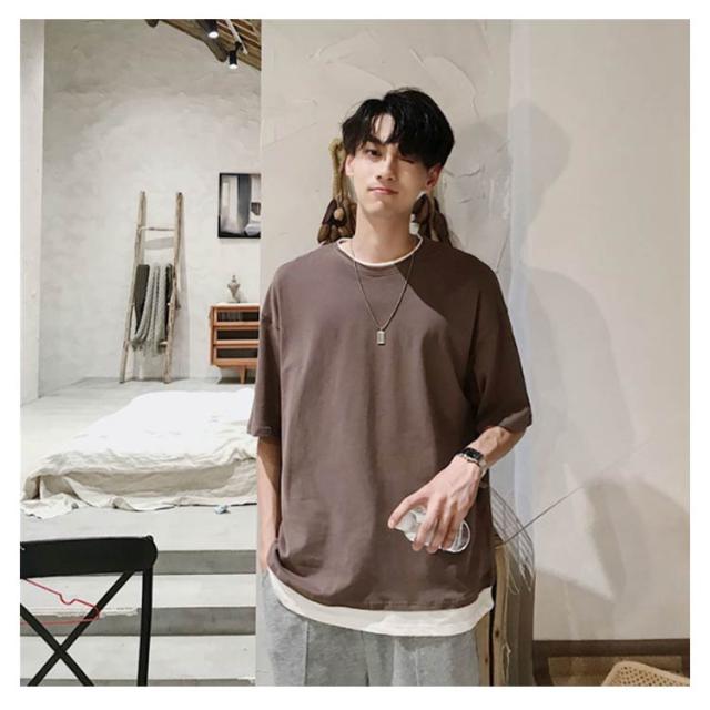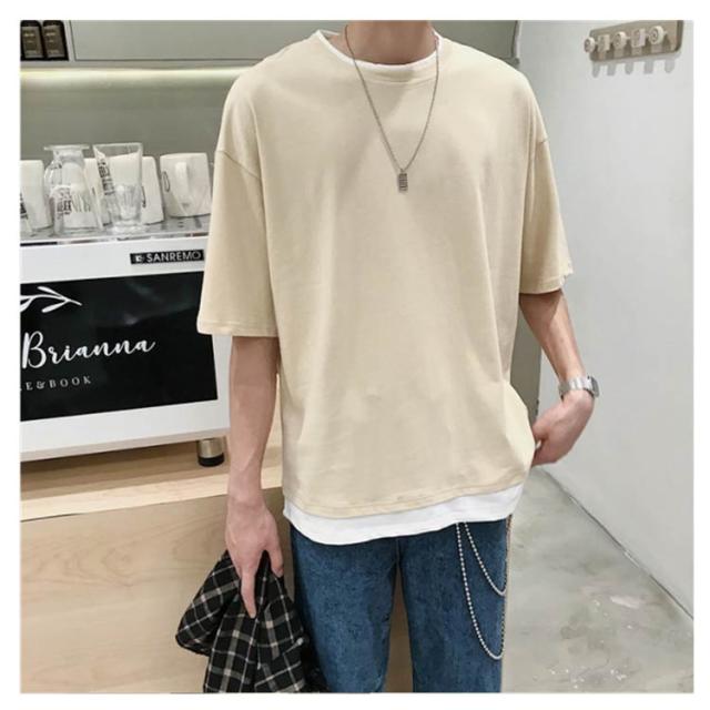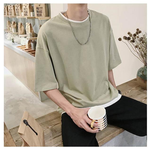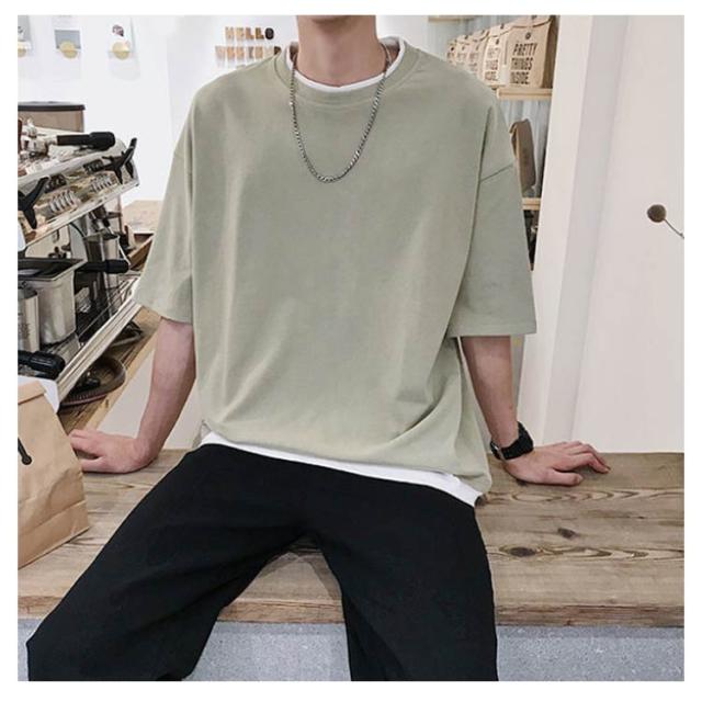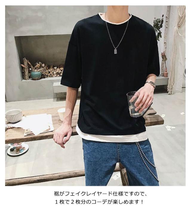 メンズ 送料無料 レイヤード おしゃれ 綿 ファッション ビッグシルエット 半袖 無地 韓国 ビッグtシャツ おうちコーデ コットン 韓国服 tシャツ