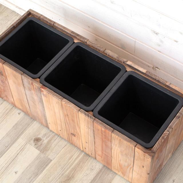 プランターカバー ウッドプランターボックス ウッドプランターカバー 長方形 3分割小 5号用×3 インナーポット付き 底穴なし 木製 外寸 幅66.5cm 奥行24.5cm 高さ26cm Botanique ボタニーク 鉢カバー 植木鉢カバー ウッドボックス 受け皿 店舗用 おしゃれ [o-51]