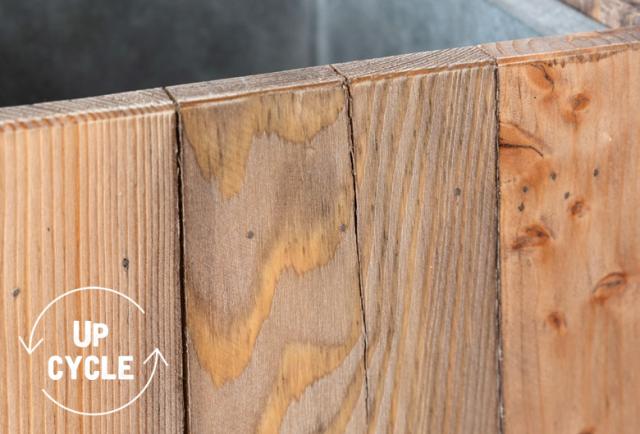 ※パレットなどをリサイクルした商品のため、 裏面や底面など通常見えない部分に着色された木材が使用されている場合がありますが、アップサイクル商品の個性としてお楽しみください。