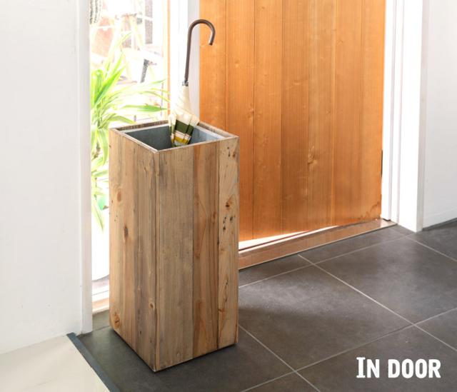 リサイクルのパイン材から作られた、存在感抜群の傘立て。