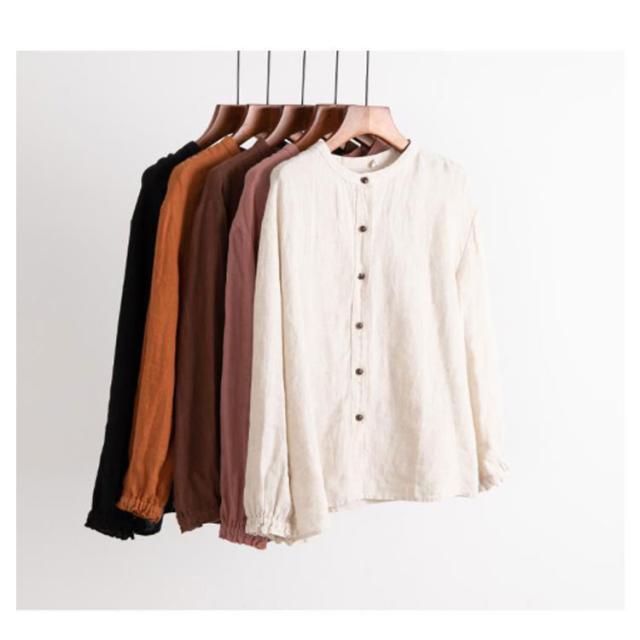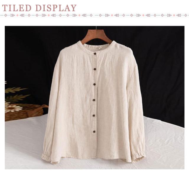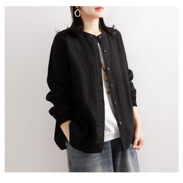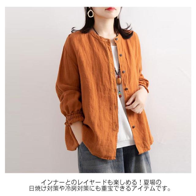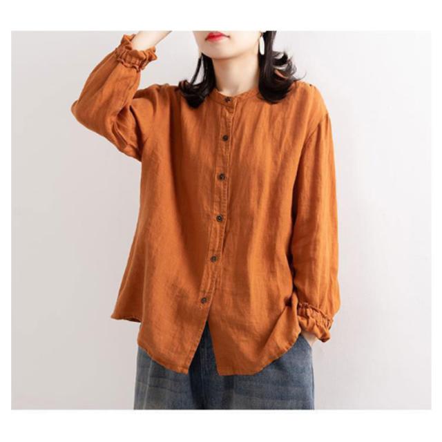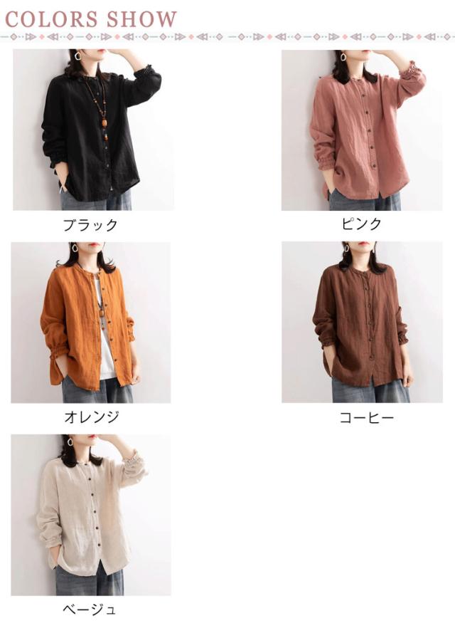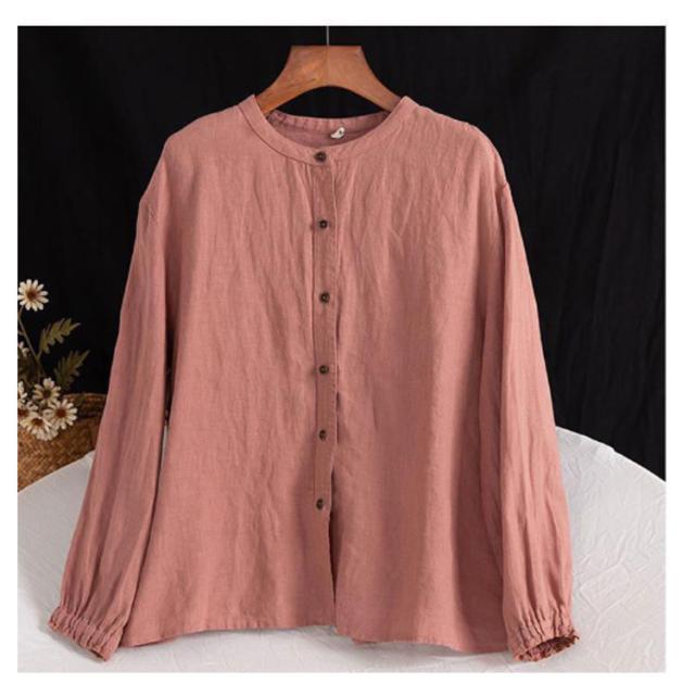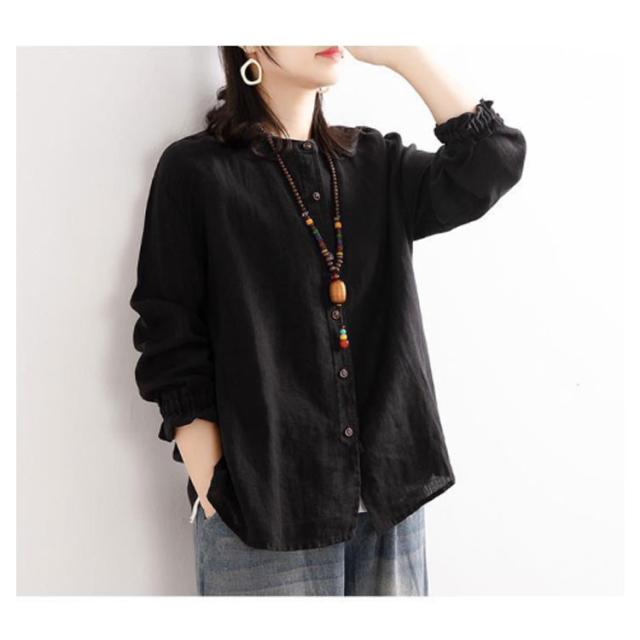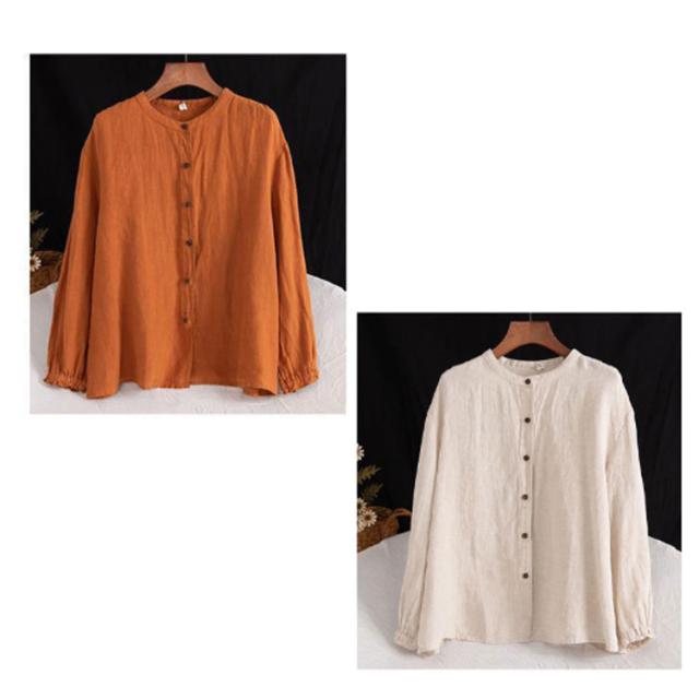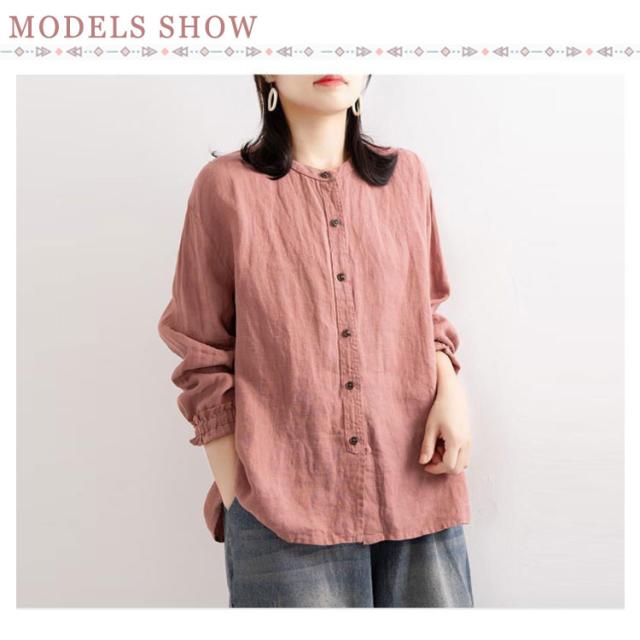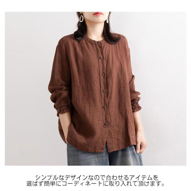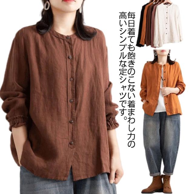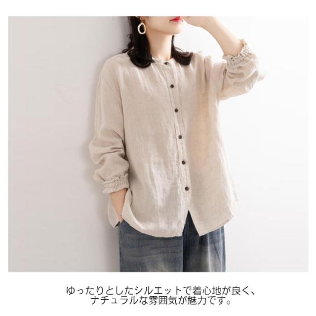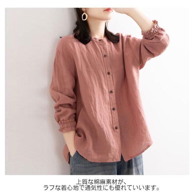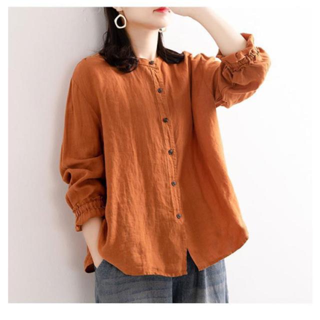 綿麻混 通気性 長袖 ゆったり シャツ シンプル ボタン付き レディース 長袖 大きいサイズ おしゃれ トップス 無地 通勤 春物 ブラウス