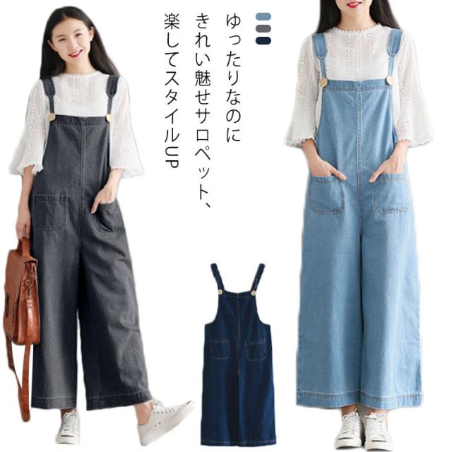 サロペット 無地 おしゃれ シンプル パンツ レディース オールインワン 秋 春 夏 サロペット 送料無料 ワイドパンツ デニム かわいい 楽ちん きれいめ オーバーサイズ ゆったり ボトムス 大人カジュアル デニムサロペット