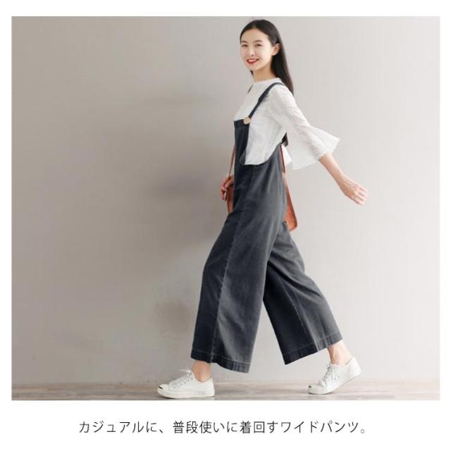 | ゆったりなのにきれい魅せサロペット、楽してスタイルUP 女性見た目で涼しげな女性美溢れるオーバーオール。 この季節に一番。穿き心地いい。 カジュアルに、普段使いに着回すワイドパンツ。 ゆったりとした着心地と、肌触りのいい生地で着心地快適。 スニーカーやブーツ、レザーシューズ、カラーソックスなど、お気に入りのフットウェアでMYスタイルを楽しめます。 | |
