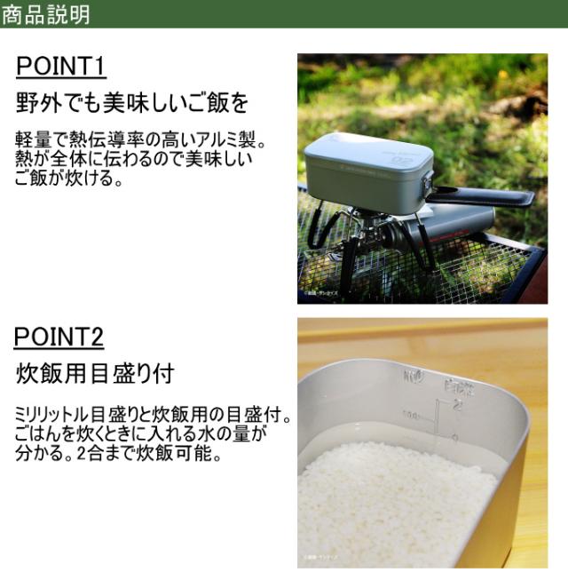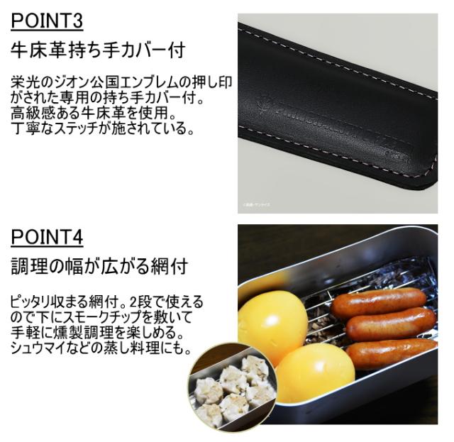 ジオン公国地球方面軍に支給された野営装備品をイメージしたメスティン(飯ごう)! 機動戦士ガンダムとコラボしたアウトドアクッカーです。 軽量で熱伝導率の高いアルミ製で、熱が全体に伝わりやすく美味しいご飯を炊くことができます。 また、コンパクトなサイズながら2合まで炊飯可能で、便利な水量を示すメモリ付き! ジオン公国エンブレムが装飾された「専用の収納袋」に入れて、キャンプや登山、ツーリングに持ち出してください。 『炊く』『焼く』『煮る』『蒸す』『茹でる』『いぶす』アウトドアであらゆる料理に使える便利な調理器具です! ※WEB画像と実物では色合い等多少異なる場合がございますがご了承ください。 ■その他のガンダム商品はこちら↓ ガンダムはこちら |
