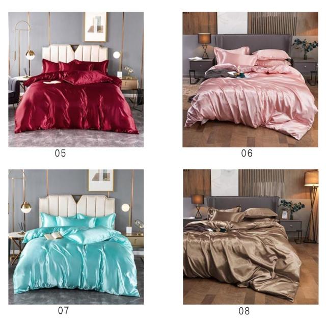 | 接触冷感・シルク調布団カバー4点セット。 シルクに近い高級感ある艶、肌触り優しい素材を使用。 布団カバー、シーツ、枕カバーx2の4点セット。 とてもなめらかで光沢のある生地ですので、見た目は美しいだけではなく、肌触りも抜群! 季節を問わず使え、夏にはサラリと涼感、冬にはすぐに体温が寝具に伝わり気持ちの良い質感 | |