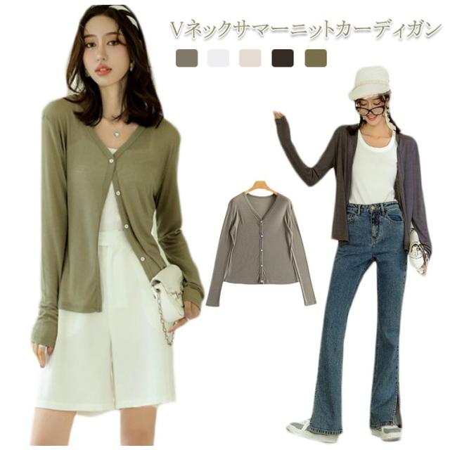 | Vネックサマーニットカーディガン 程よいゆとりを持たせたなシルエットで、 コーデバランスを取りやすく着回し力抜群! 日よけやエアコン対策におすすめのカーディガンはどんなスタイルにもマッチ。 肌ざわりいいです!さらりとしているので夏の日除け対策にもぴったり。 カラーバリエーションが豊富に揃えております。 | |