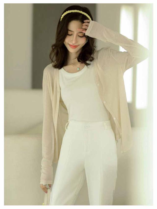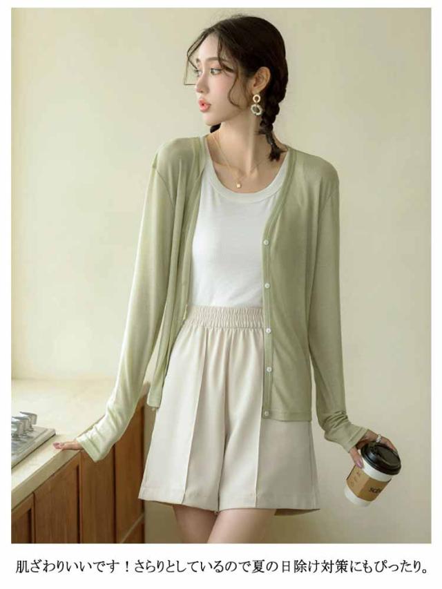 ショート丈 夏 レディース UVカット 薄手 サマーニットカーデ 透け感 羽織り UVカット カーディガン vネック 長袖 紫外線対策 トップス テンセル 送料無料 冷房対策 紫外線対策 接触冷感 ゆったり 大きいサイズ おしゃれ カーディガン