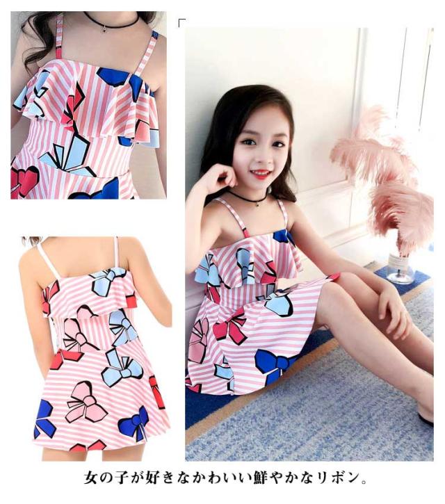子供 ワンピース水着 送料無料 女の子 リボン かわいい 女の子 セット 水着 フリル 幼稚園 子供水着 キッズ水着 女の子水着 学校用水着 キッズ