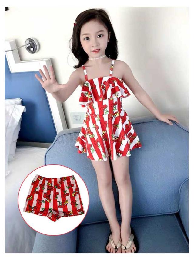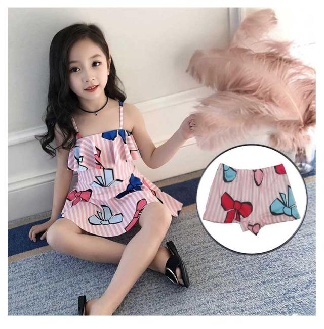 | 可愛いリボン柄子供用水着。 お腹を冷やさないオールインワン仕様。 女の子が好きなかわいい鮮やかなリボン。 ショートパンツ付きで安心。 | |