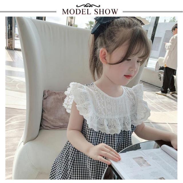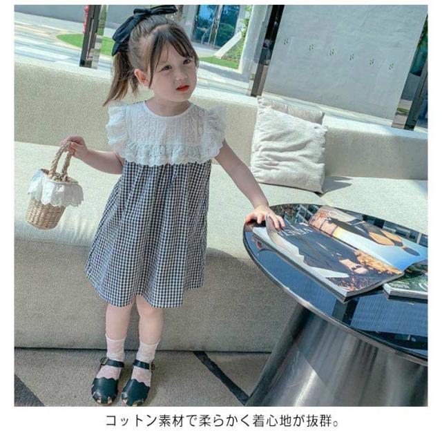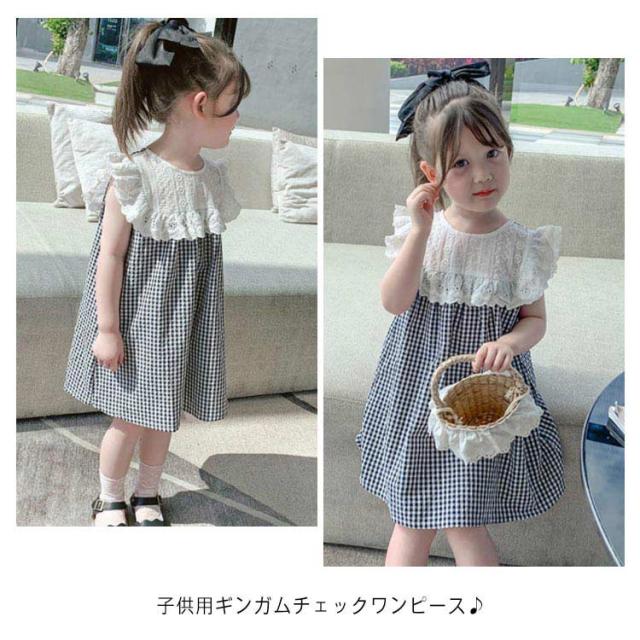 子供服 レース襟 キッズ服 ワンピース ベビーワンピース ワンピース 女の子 フリル コットン ギンガムチェック かわいい おしゃれ プレゼント 半袖