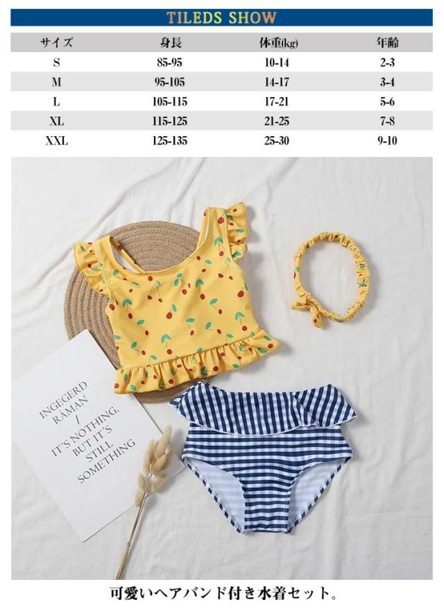 水着 キッズ 女の子 キッズ 子供 セパレート 保育園 学校用 セット フリル水着 ガールズ水着 チェック 水着 かわいい水着 水着 幼稚園 ジュニア水着 90 100 110 120 ヘアバンド付き