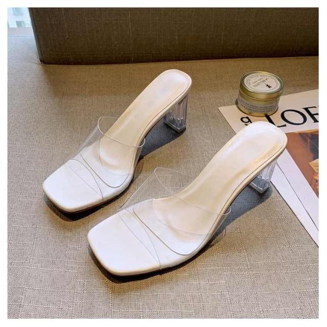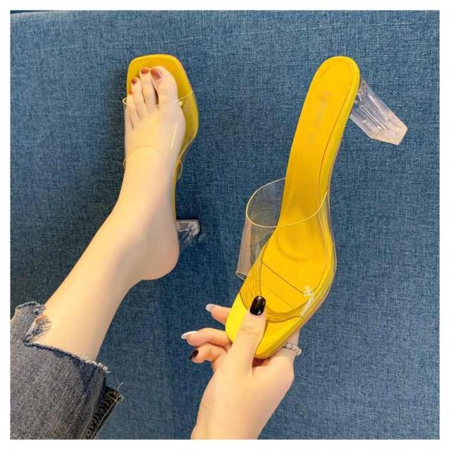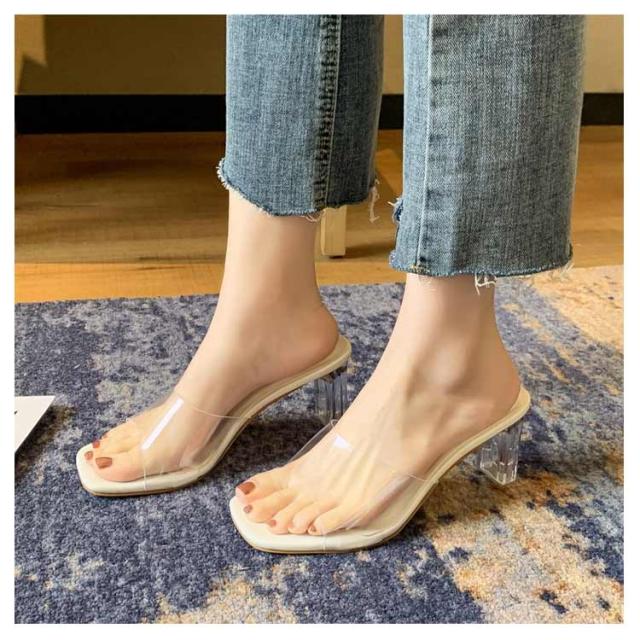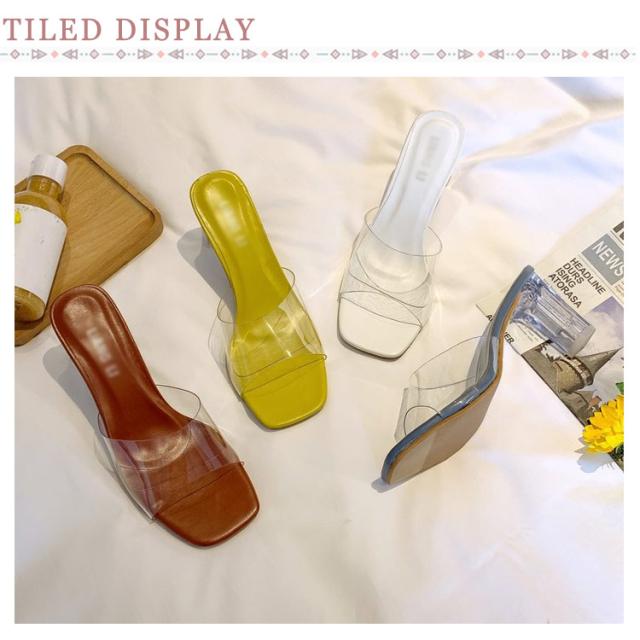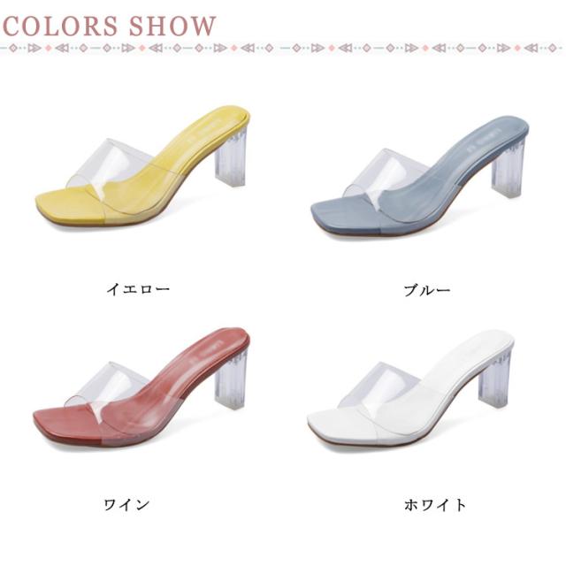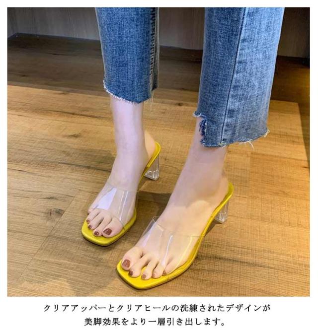 レディース 美脚 サンダル ミュール 履きやすい クリア 2次会 結婚式 結婚式 チャンキーヒール 疲れにくい お洒落 普段用 軽量 サボサンダル