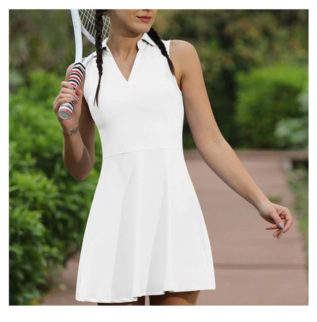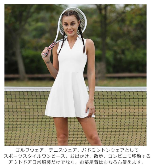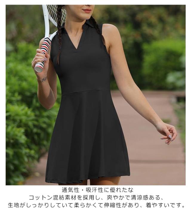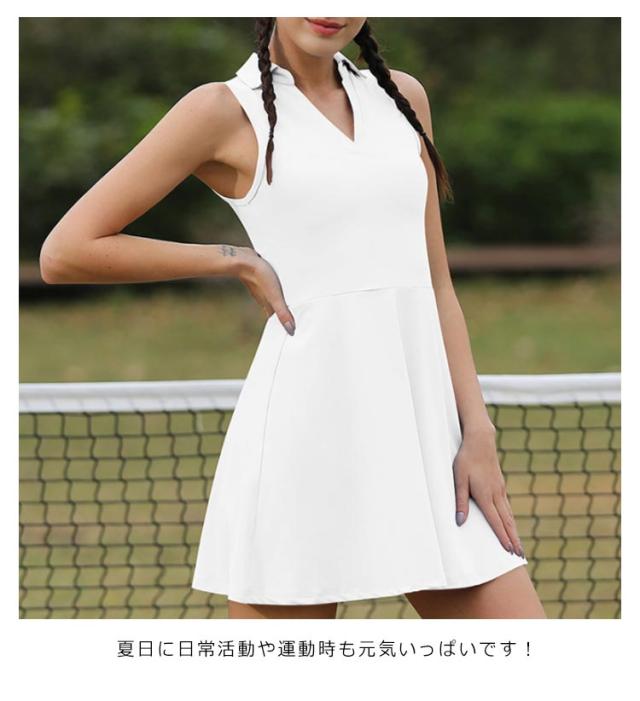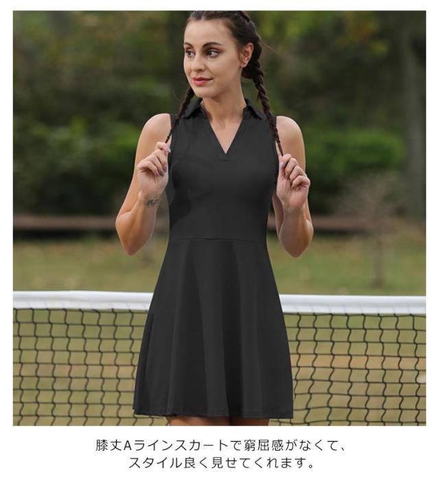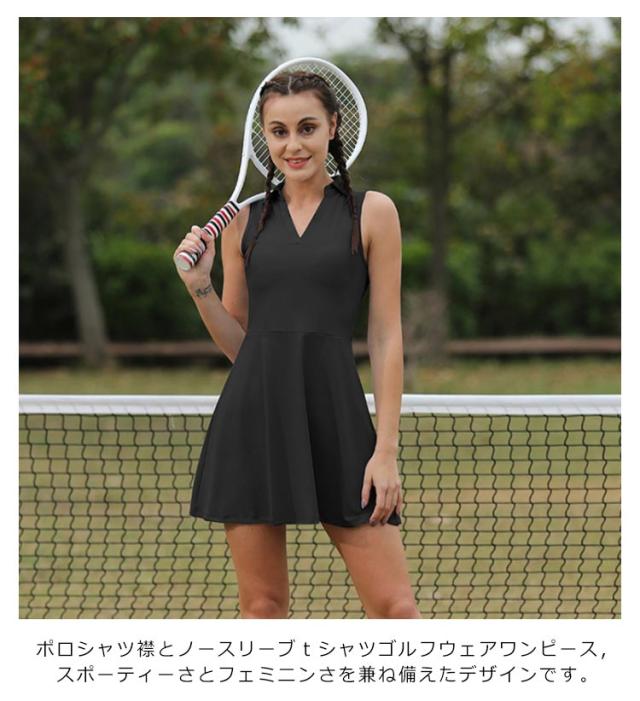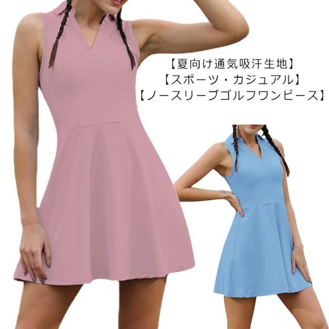 夏 レディース Tシャツ ノースリーブ ワンピース テニスウェア ゴルフウェア スポーツウェア ゴルフ ゴルフドレス 送料無料 GOLF Vネック ゴルフ用品 通気 吸汗 女性用運動着 Vネック