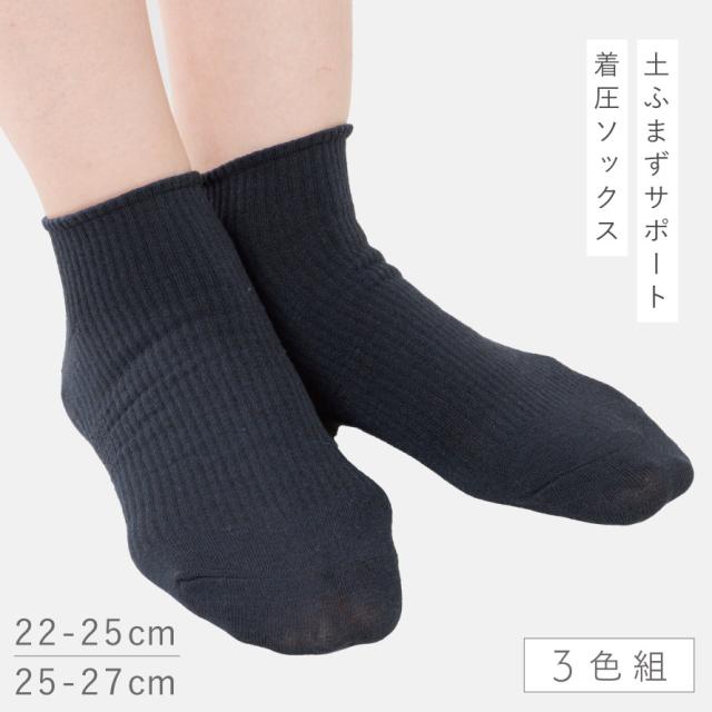 靴下 メンズ 3色組 25-27cm 着圧ソックス 着圧 男性 スニーカー丈 くるぶし スニーカーソックス ロークルーソックス 土ふまずキュッと着圧スニーカー丈ソックス