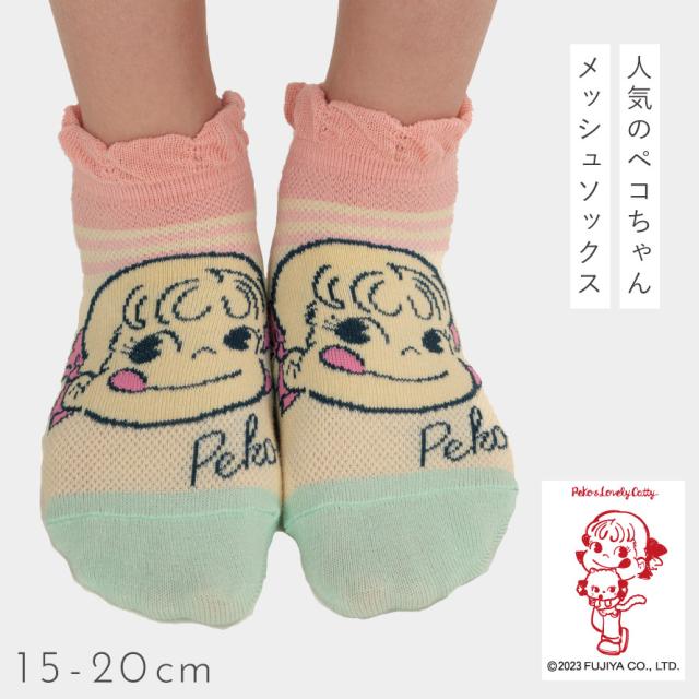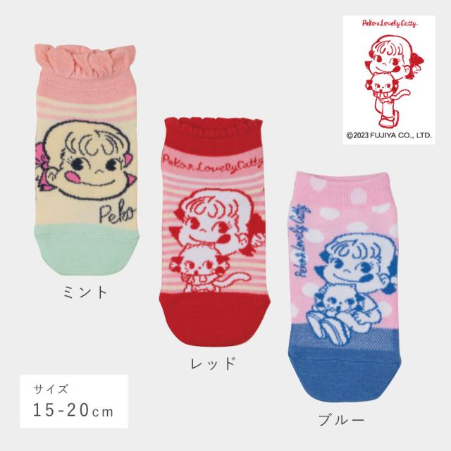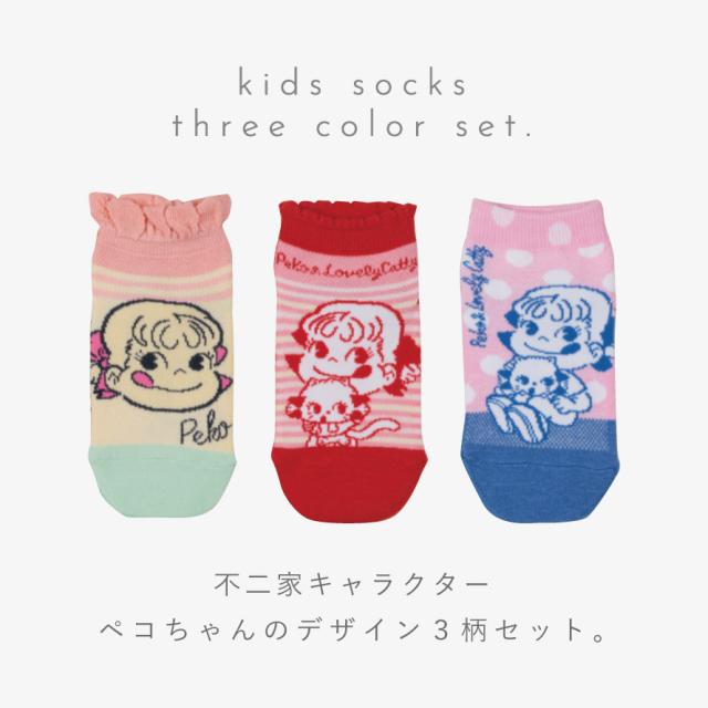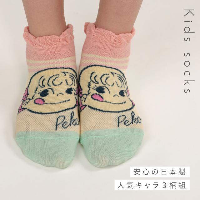 靴下 子供 キッズ 3柄組 15-20cm 女の子 ペコちゃん キャラクター ペコちゃんメッシュソックス