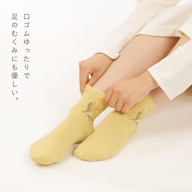 履き口 ゆったり 靴下 レディース 【3色組】22-25cm 春夏 薄手 花 花柄 おしゃれ かわいい【 口ゴムなし みたいな履き心地】ズレない 脱げない ゆるめ 口ゴムゆったり 締め付けない むくみ 高齢者 シニア 足のむくみ 口ゴムゆったりミモザソックス 跡がつかない