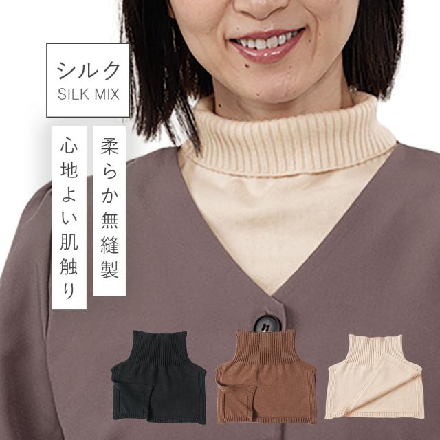 ネックウォーマー,ネックカバー,重ね着風,首元,首,しわ隠し,シワ隠し,ニット,レーヨンシルク,縫い目,なし,無縫製,インナー,日本製,ベージュ,シンプル,ソフト,ストレッチ,伸びる,動きやすい,履きやすい,締め付けない,しめつけない,締めつけない,ストレスフリー,楽ちん,やわらかい,柔らかい,ソフト,肌触り,ソフトタッチ,快適,心地よい,大人,大人用,レディース,女性,女性用,レディース,女性,大人,女性用,婦人用,婦人靴下,秋冬,秋,冬,日本製,べージュ,ブラック,黒,ブラウン,茶色,