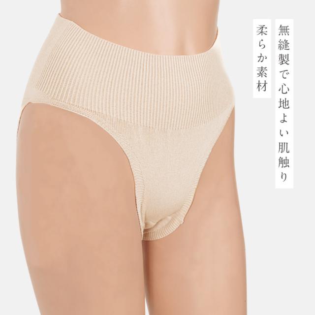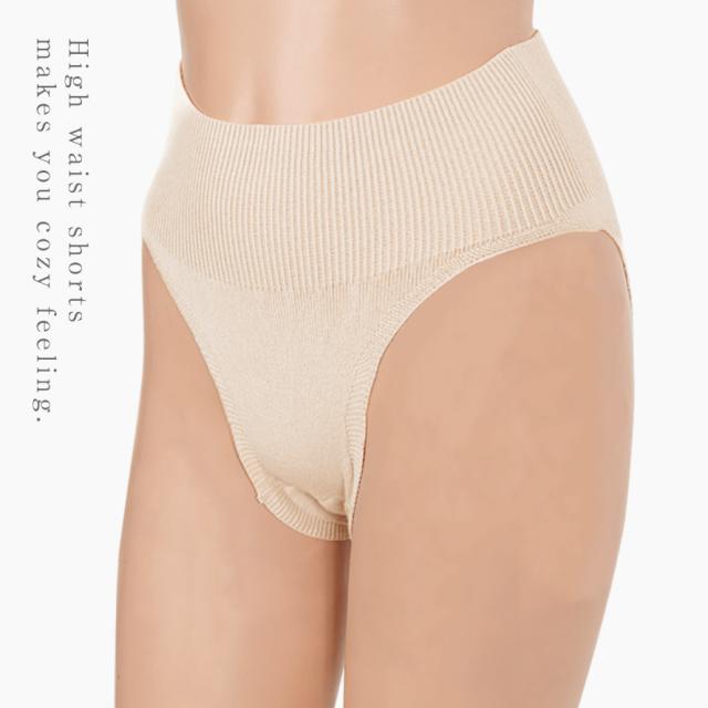 ショーツ 縫い目 なし 無縫製 日本製 ベージュ パンツ 深ばき 深履 ハイウエスト 股上深め なめらかな肌触りのニットハイウエストショーツ