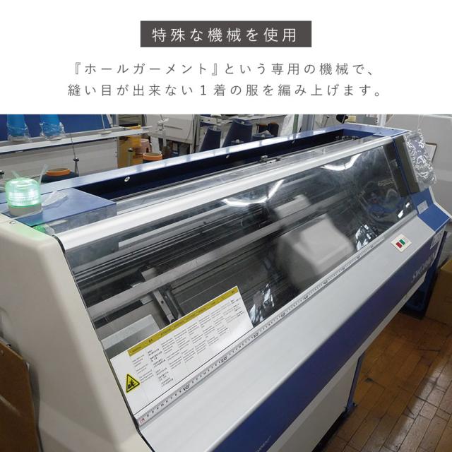 通常はパーツ別に作った生地を縫い合わせますが、ホールガーメントという専用の機械で1着の服を編み上げます。