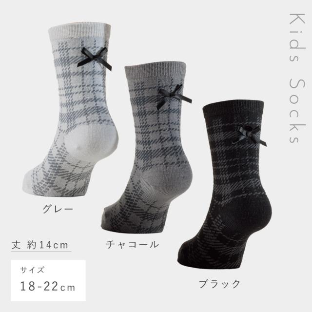 靴下,くつ下,ソックス,くつした,18-22cm,キッズ,女の子,子供,子供用,セット,3足組,クルー丈,フォーマル,つま先,かかと,補強,丈夫,幼稚園,保育園,小学校,小学生,子ども,こども,春,夏,秋,冬,オールシーズン,おしゃれ,お洒落,オシャレ,かわいい,可愛い,洗い替え,リボン,モノトーン,グレー,チャコール,ブラック,黒,チェック,上品,エレガント,