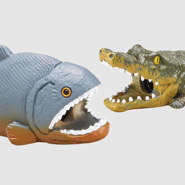 ワニ、ピラニア、ワニガメ、ホオジロザメの4種よりお選びいただけます。