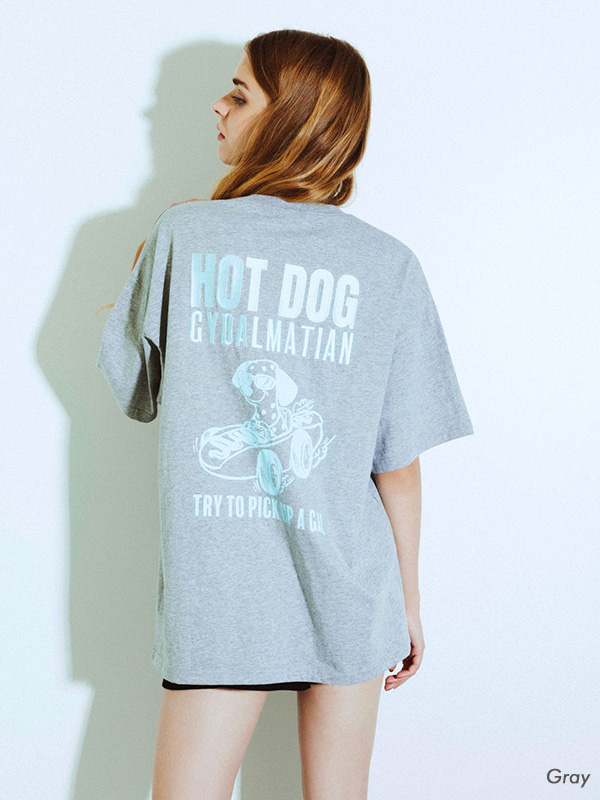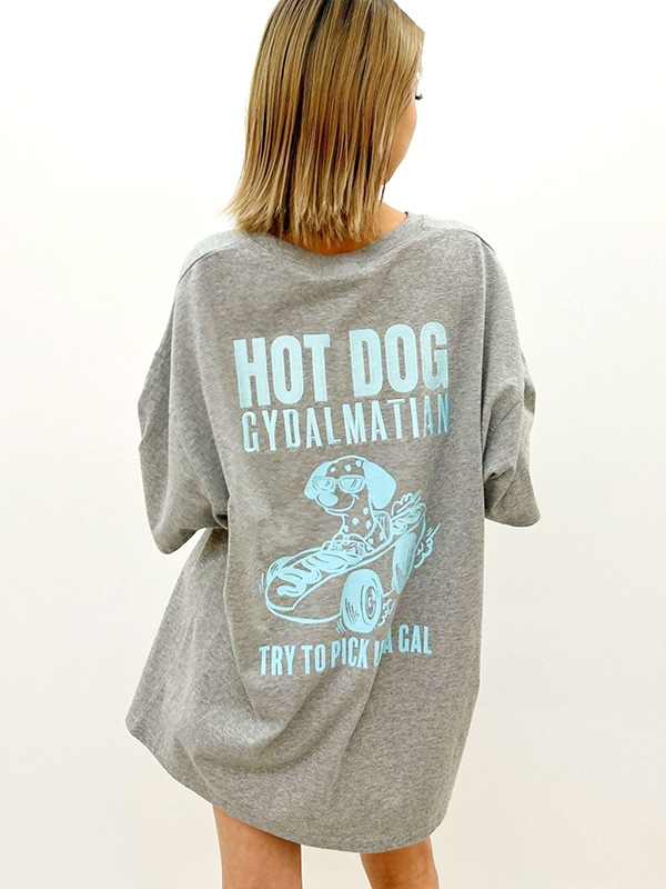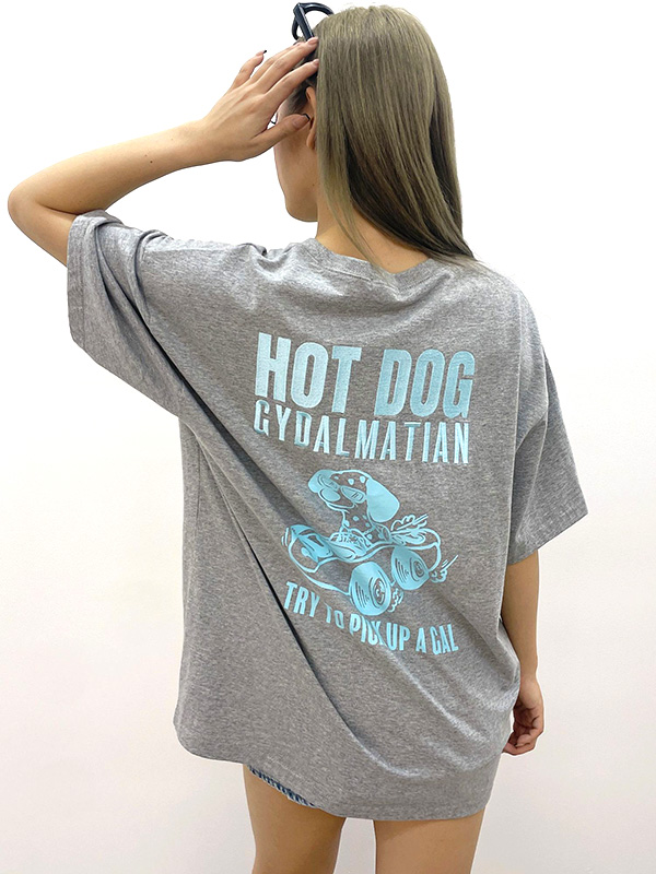 GYDA ジェイダ Tシャツ レディ—ス 半袖 綿 100% HOT DOG GYDALMATIAN BIG ダルメシアン 大き目シルエット ドロップショルダー ブラック ホワイト グレー 072522704801