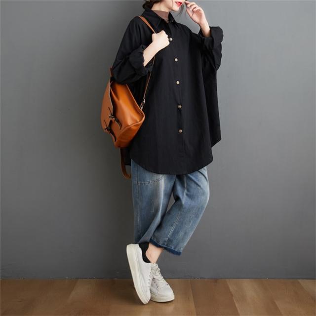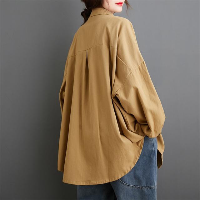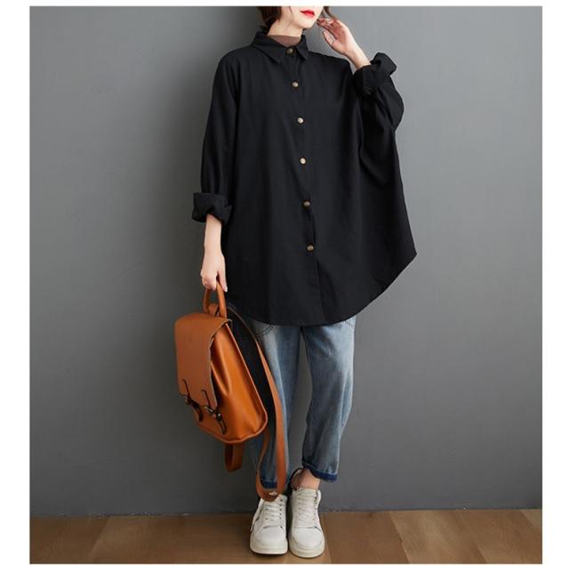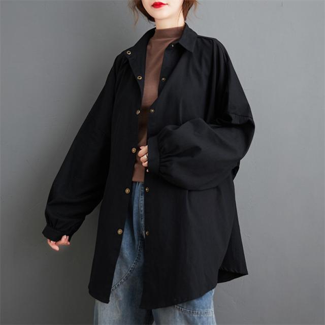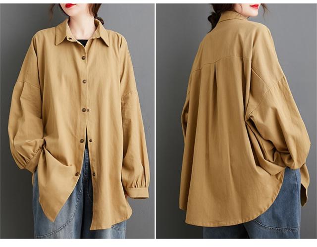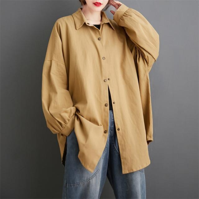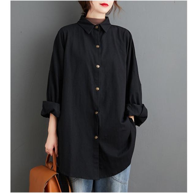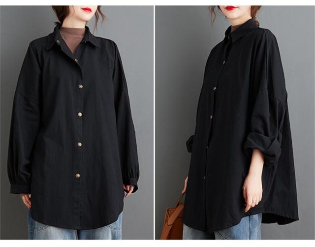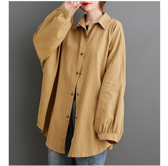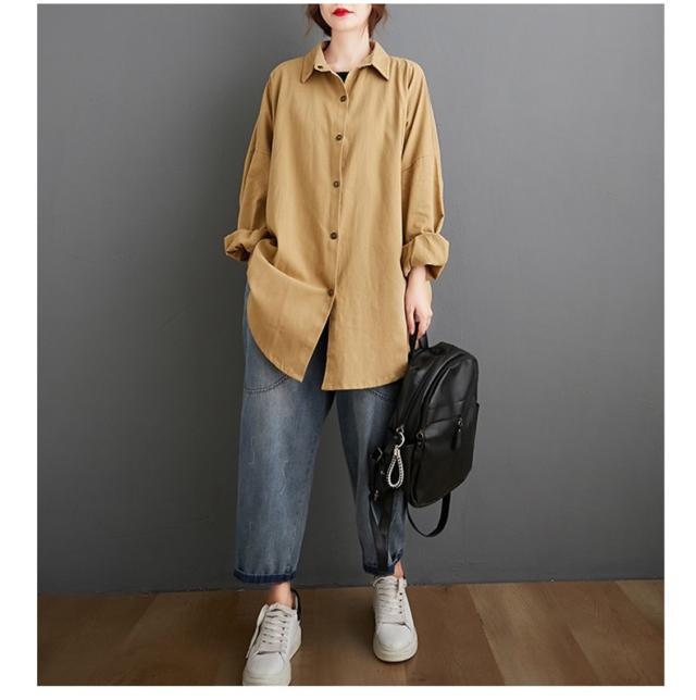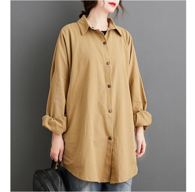シャツ 羽織り レディース トップス 折襟 前開き 春秋 ボタン留め オーバーシルエット 無地 オトナカジュアル風 ルーズスタイル