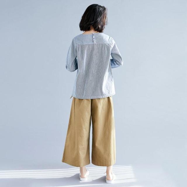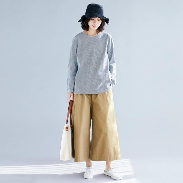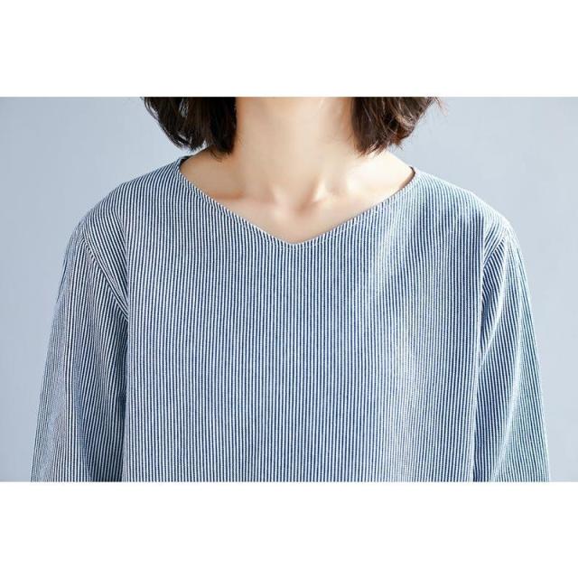 トップス レディース ストライプ 大人 上品 長袖 大きいサイズ ゆったり 綿100% オトナ女子向け