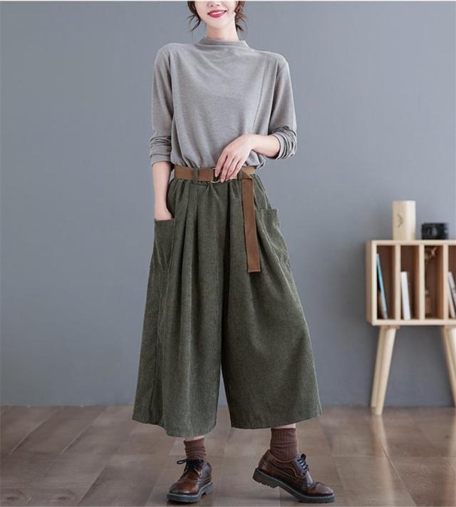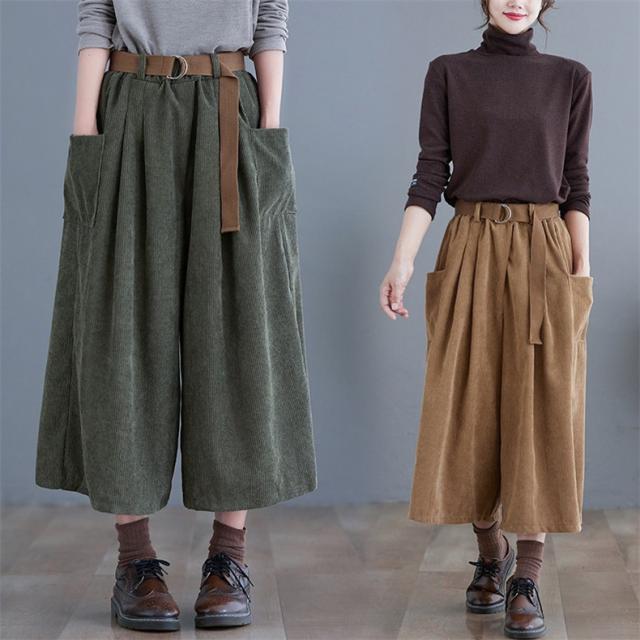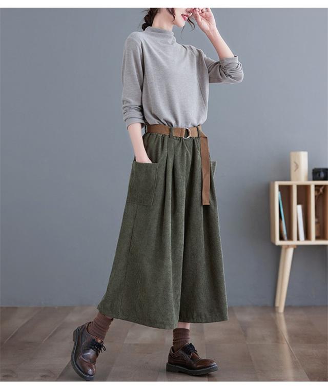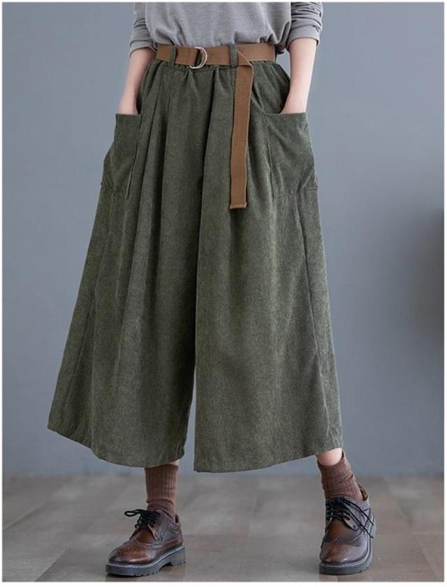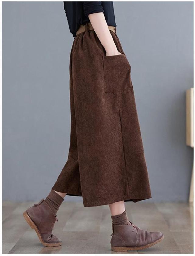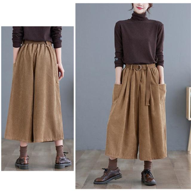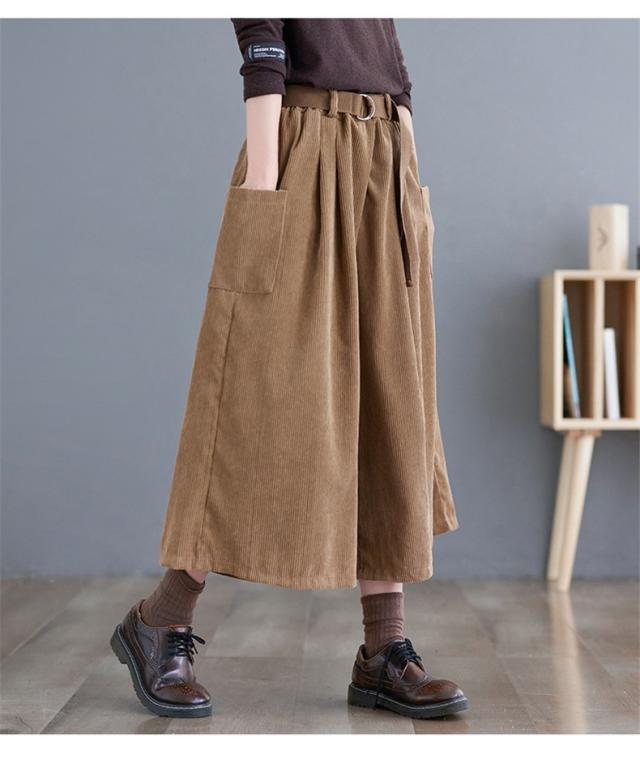 ワイドパンツ ガウチョパンツ ボトムス レディース コーデュロイ 大きいサイズ M〜XXL 大人カジュアル ベルト付き 着痩せ 秋冬コーデにおすすめ