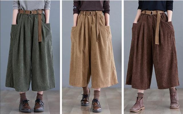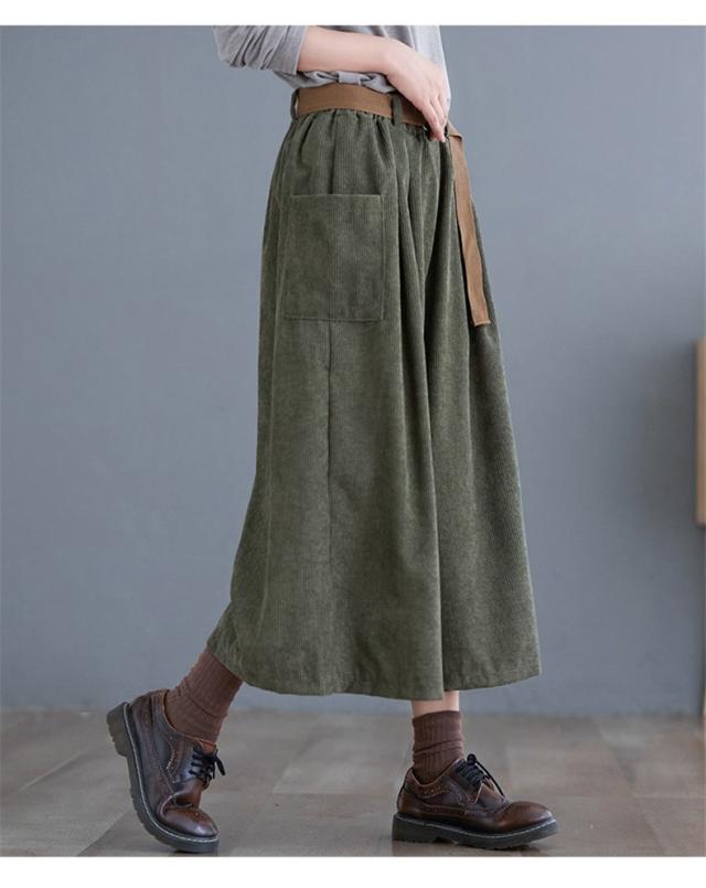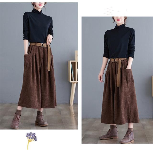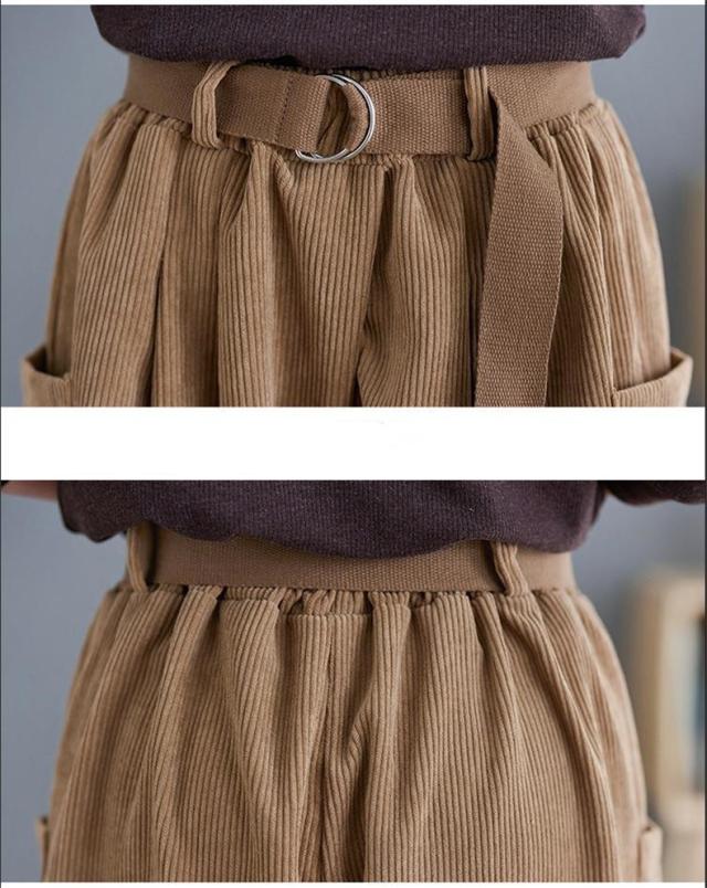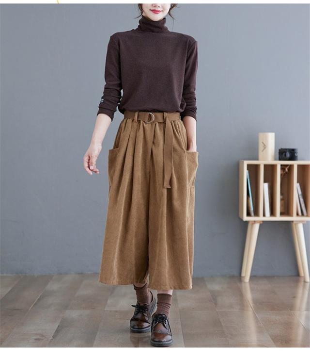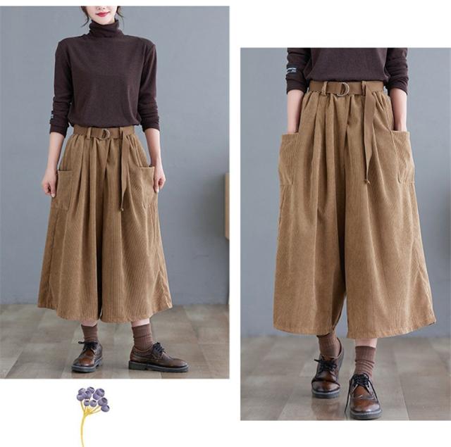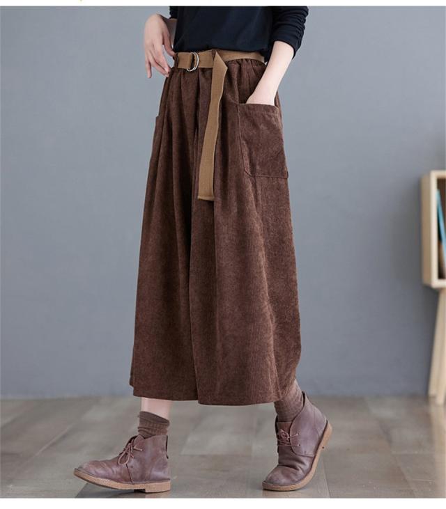ワイドパンツ ガウチョパンツ ボトムス レディース コーデュロイ 大きいサイズ M〜XXL 大人カジュアル ベルト付き 着痩せ 秋冬コーデにおすすめ