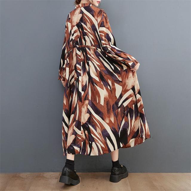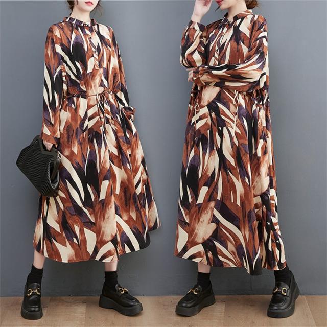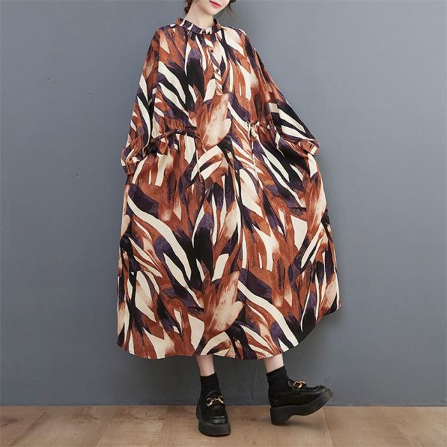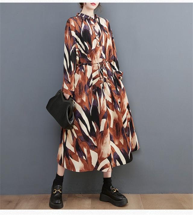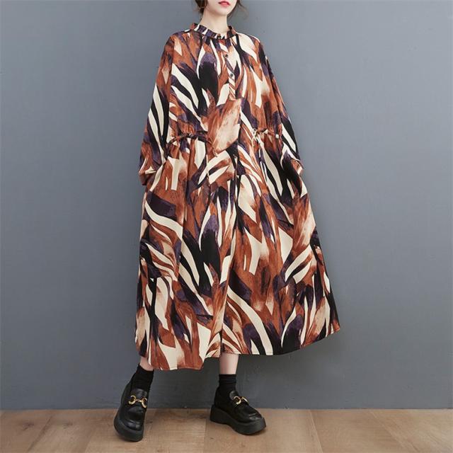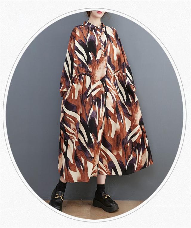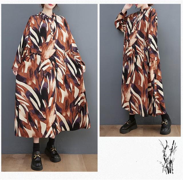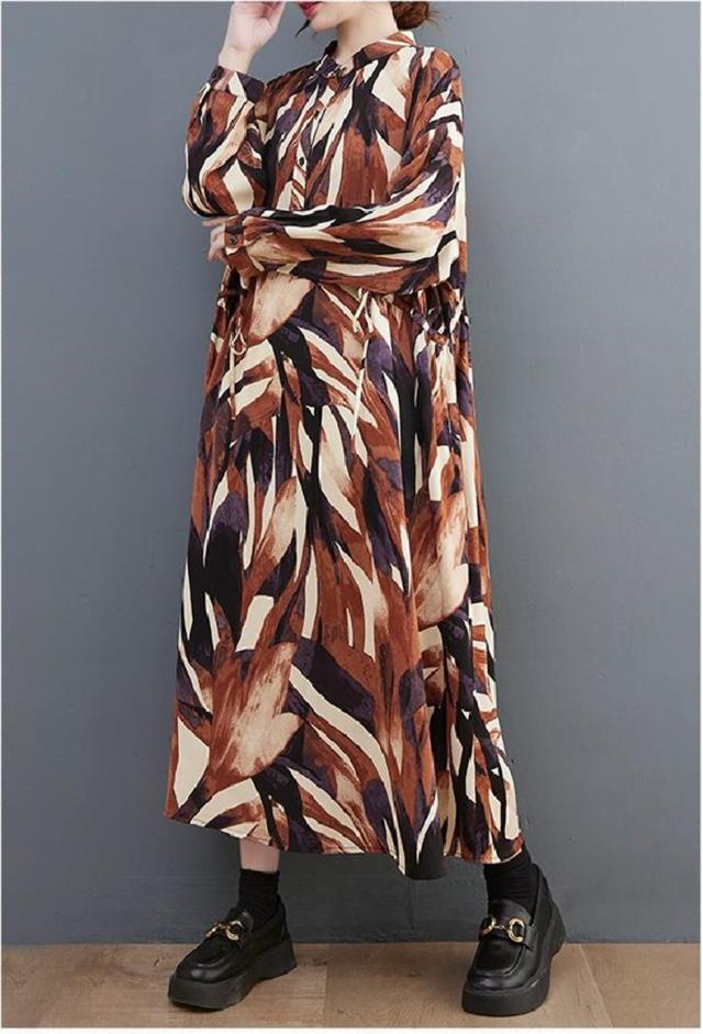 シャツワンピース レディース 長袖 立ち襟 ゆるっと 着痩せ 自然に体型カバー 大きいサイズ リラクシー オーバーシルエット おすすめ