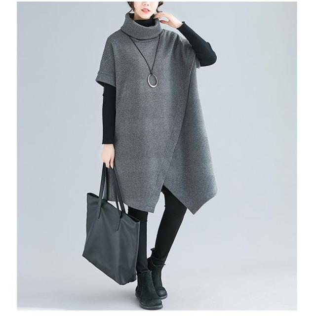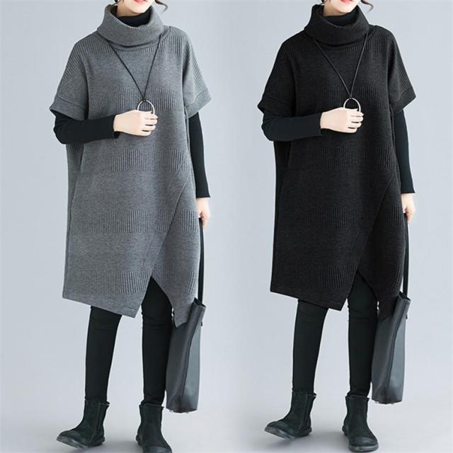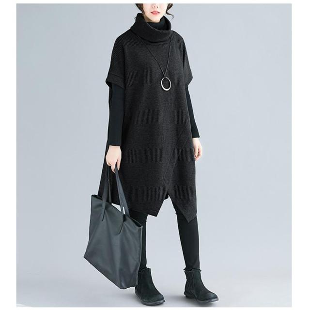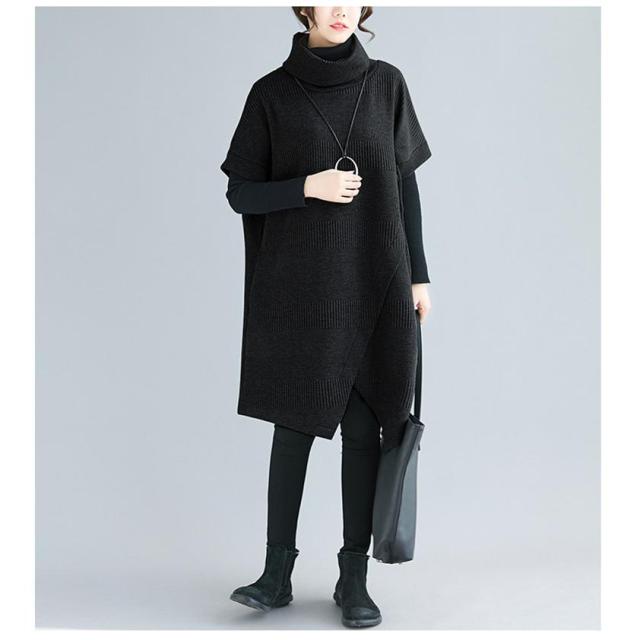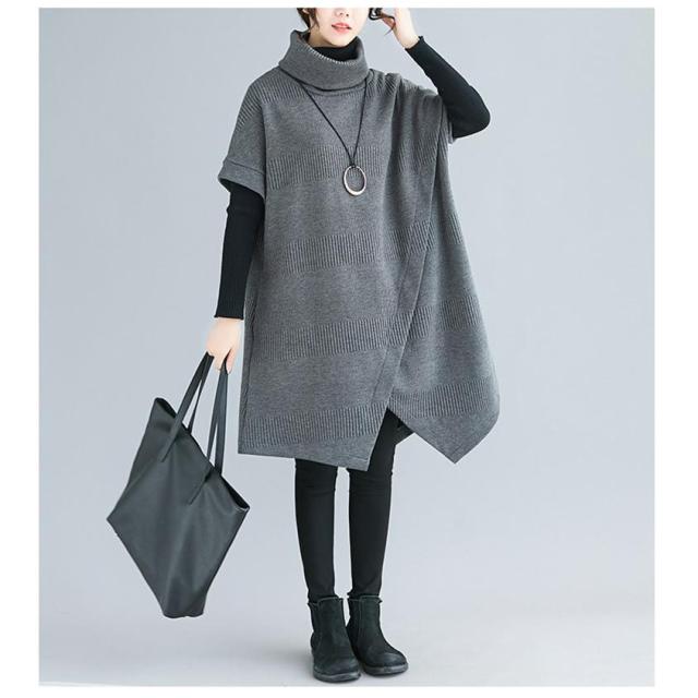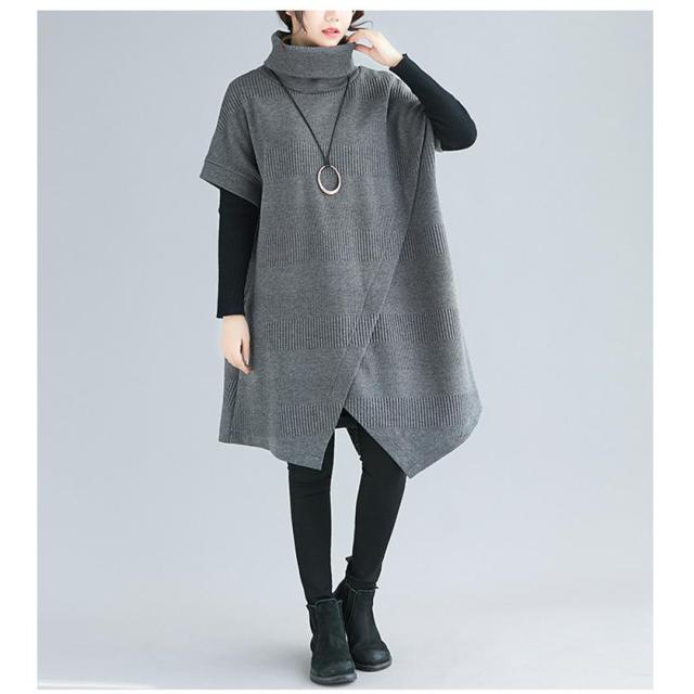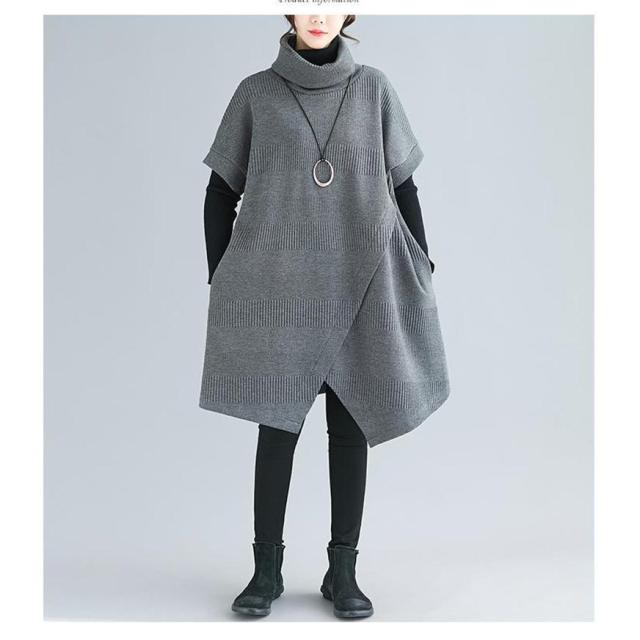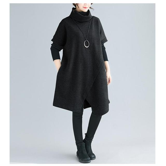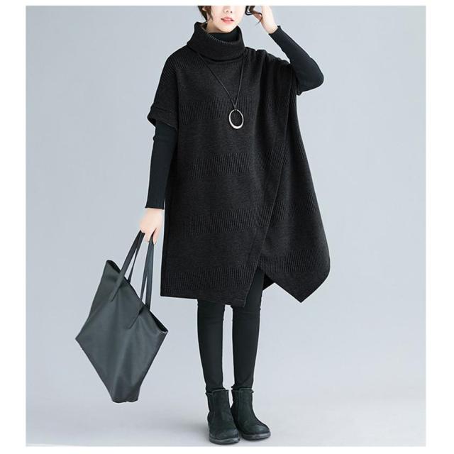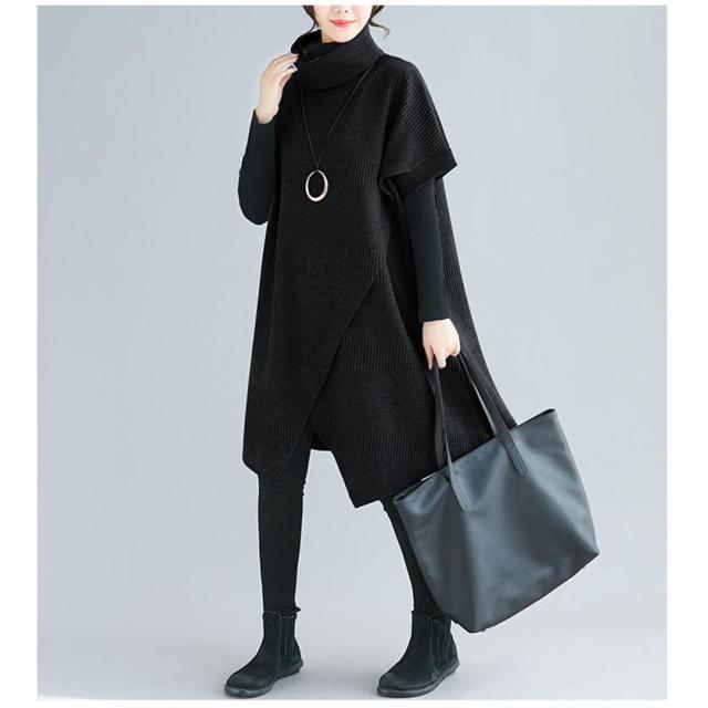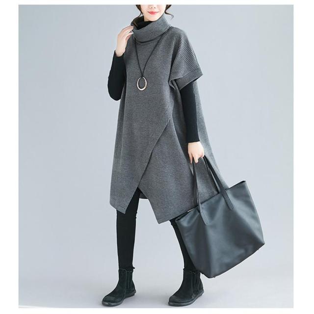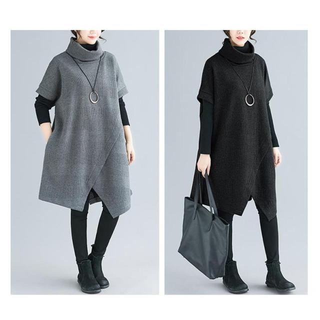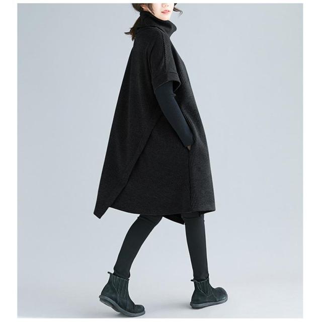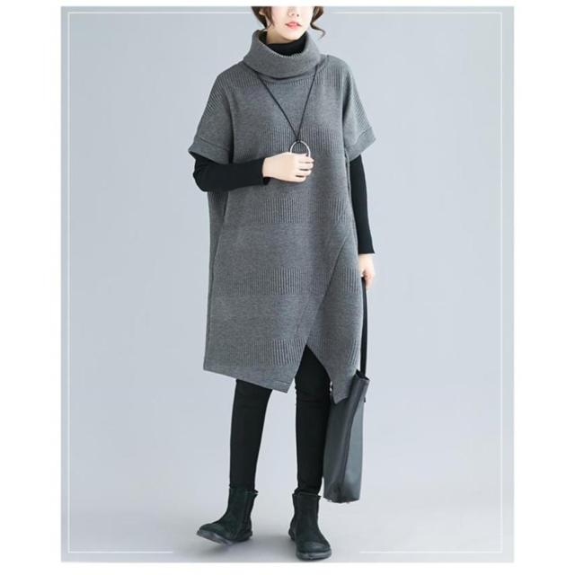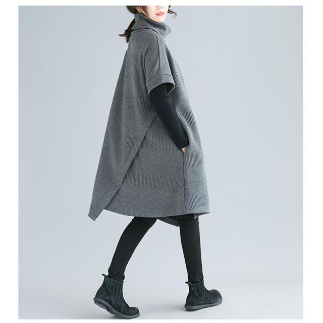 ハイネックワンピース 半袖 体型カバー レディース 膝丈 着痩せ 秋冬コーデ 不規則 大きいサイズ ゆったり 今っぽいオシャレ感が叶う
