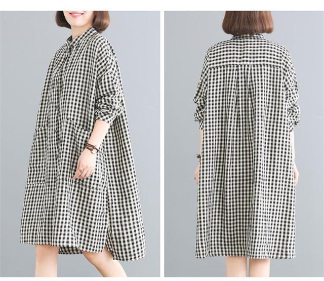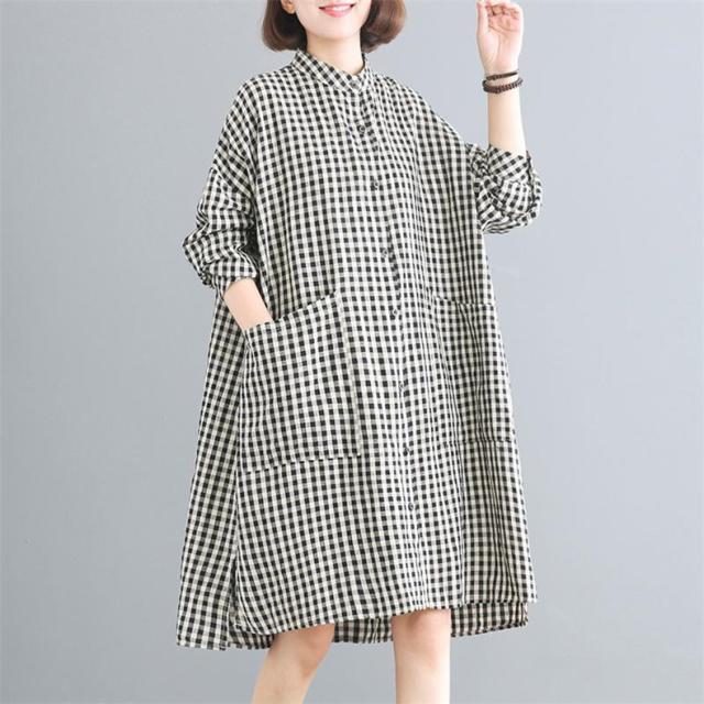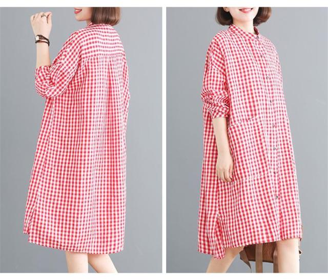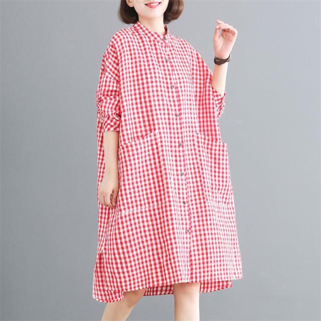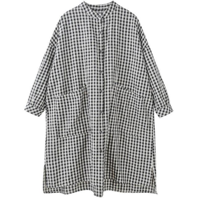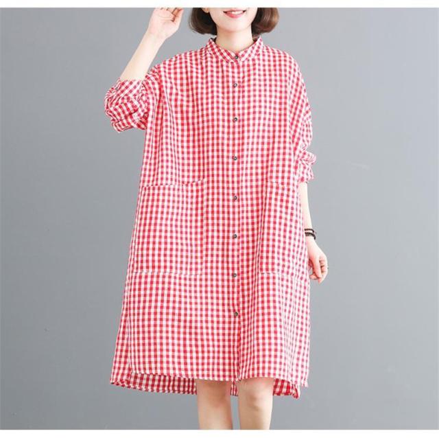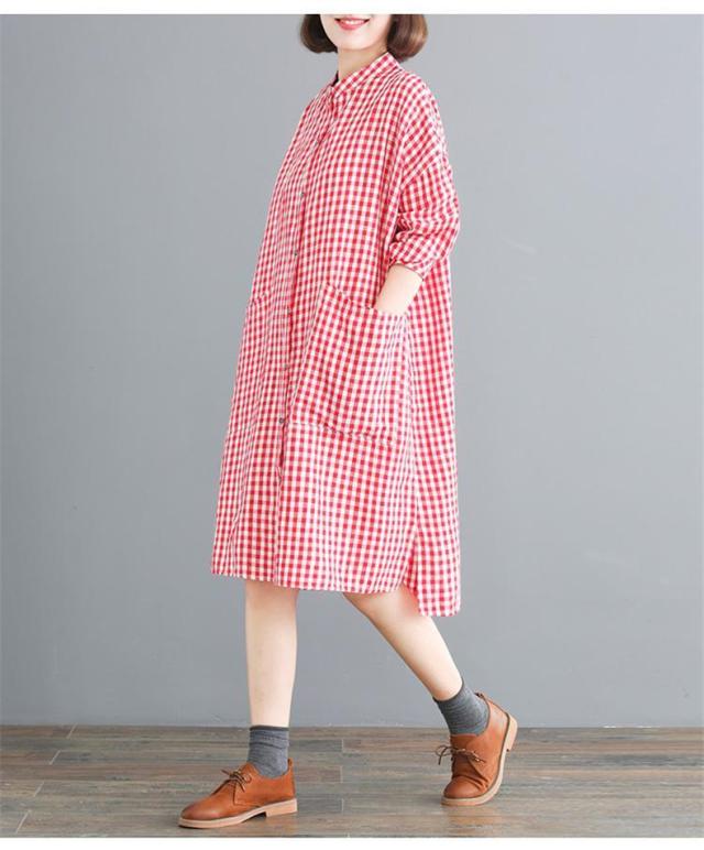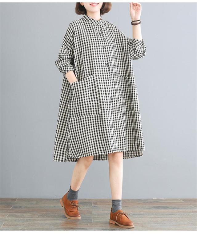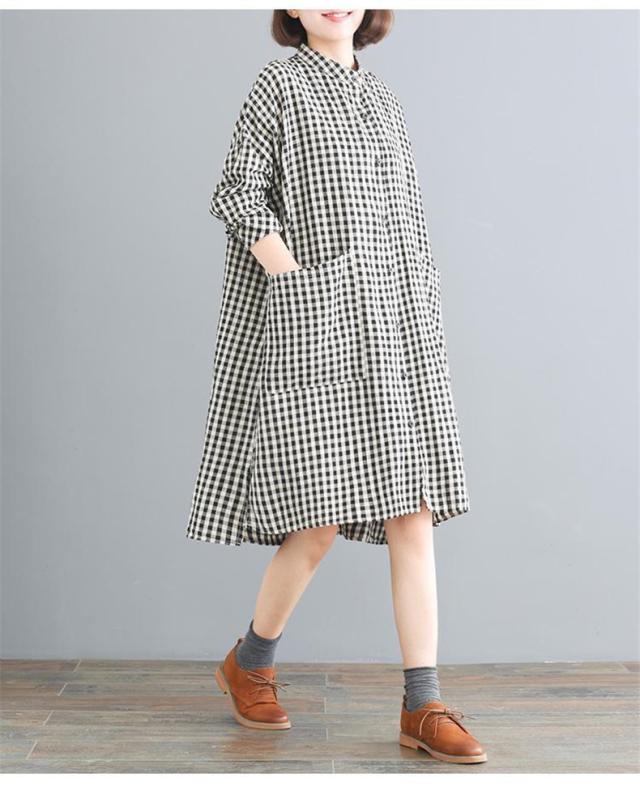 シャツワンピース レディース 膝丈 長袖 体型カバー チェック柄 シンプル 大きいサイズ きれいめ 30代40代50代 着こなし感がありオシャレ
